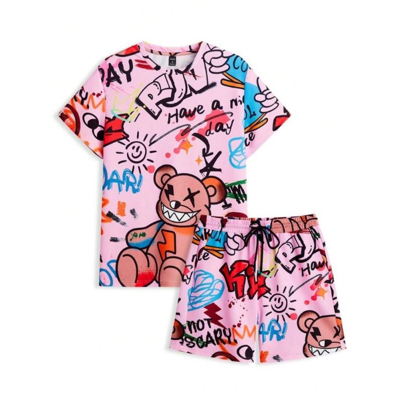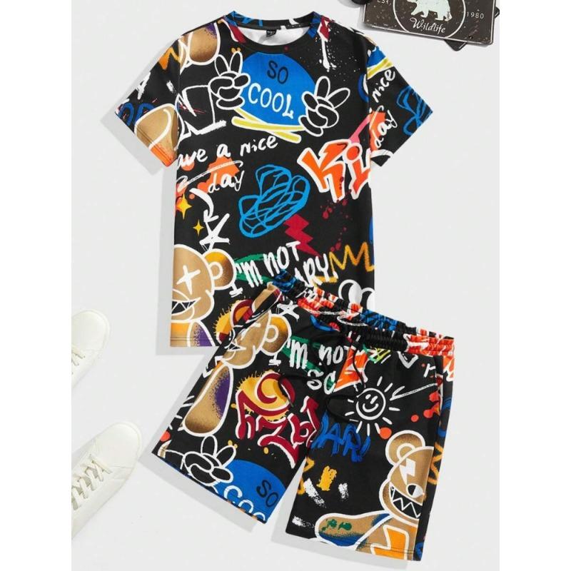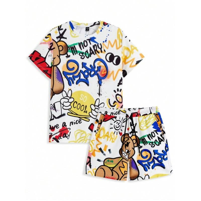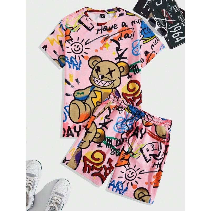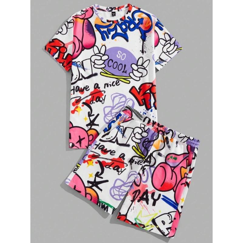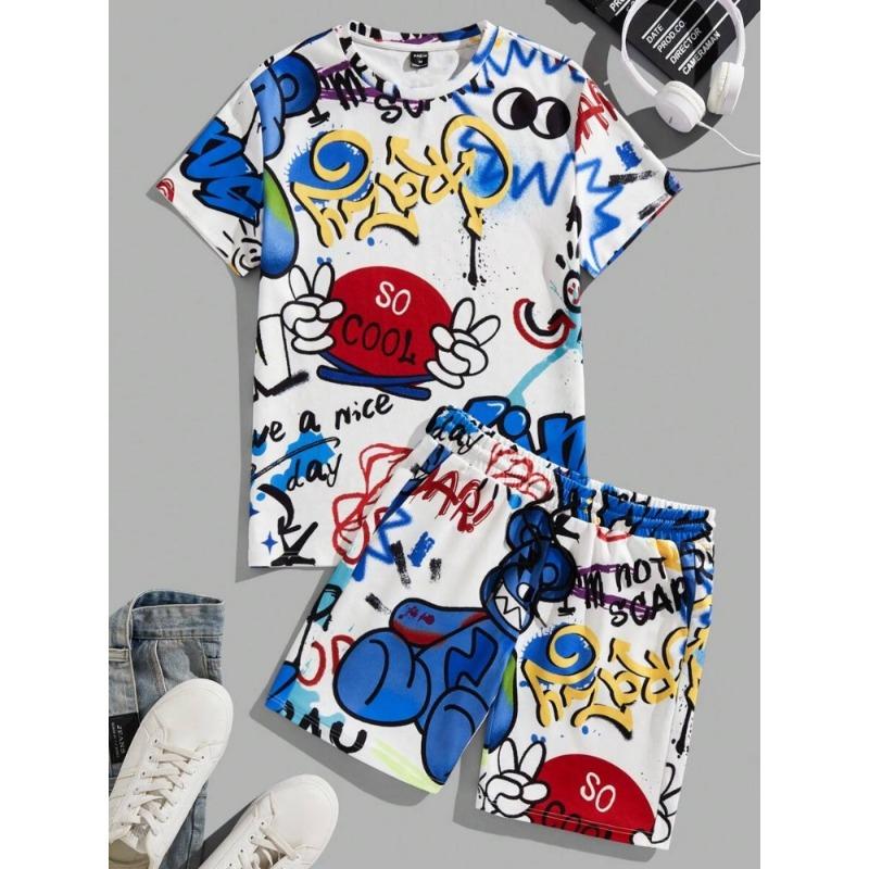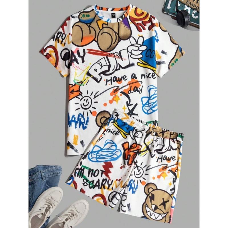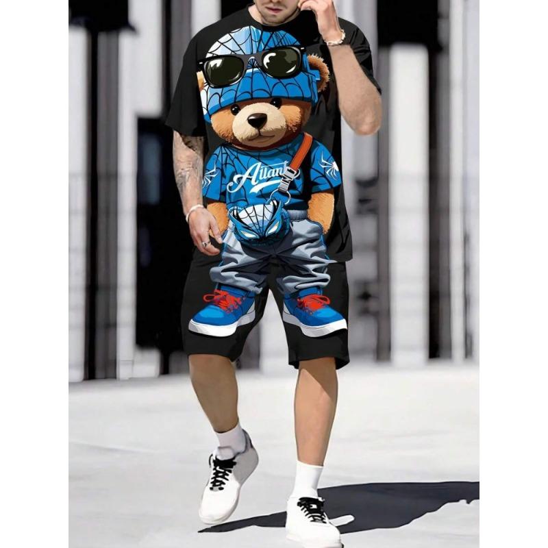 2024 Новый летний мужской комплект с короткими рукавами, повседневная мужская футболка, мужские пляжные шорты для отдыха на открытом воздухе, комплект из 2 предметов с 3D-принтом