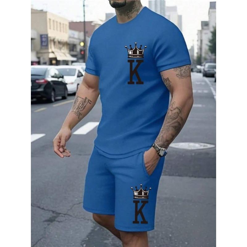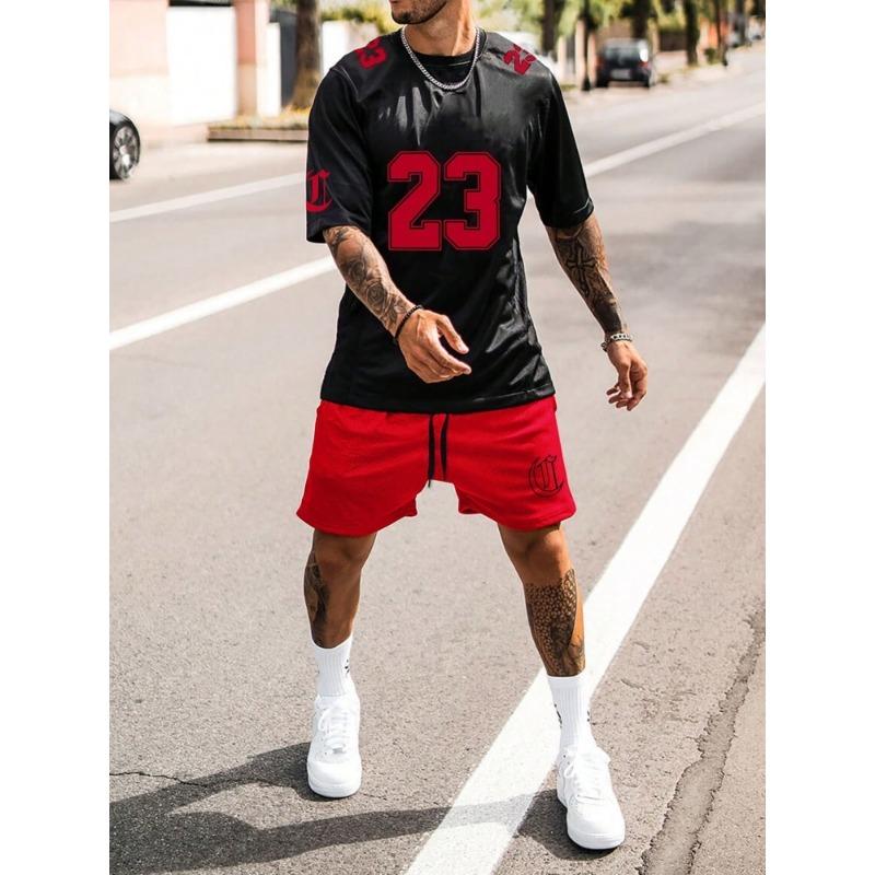 Комплект из 2 предметов уличной моды с короткими рукавами, летняя повседневная мужская футболка для спорта на открытом воздухе, мужские пляжные шорты с 3D-принтом