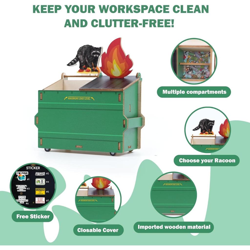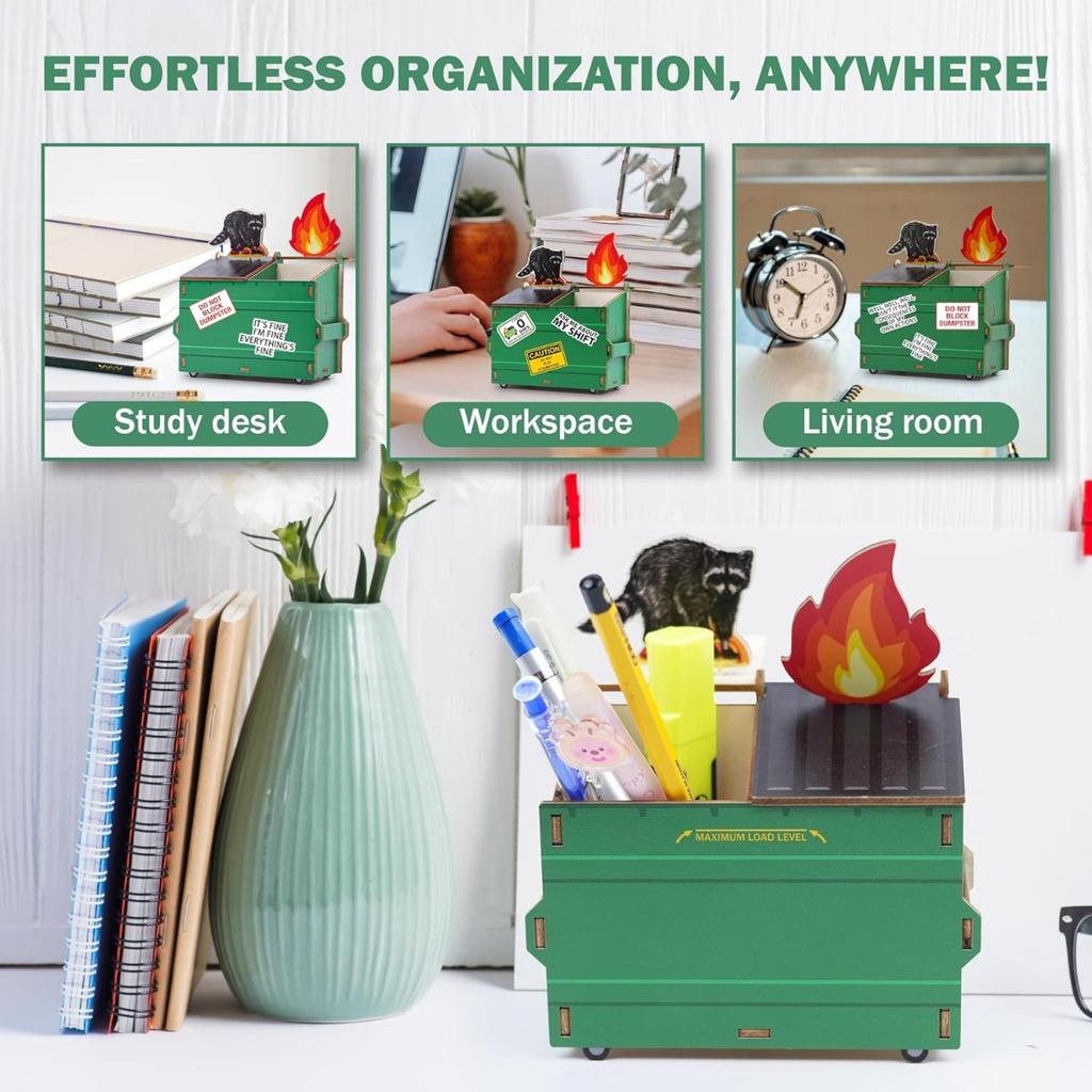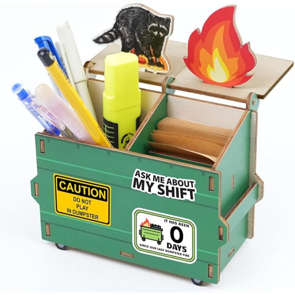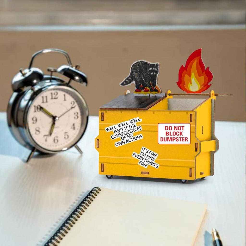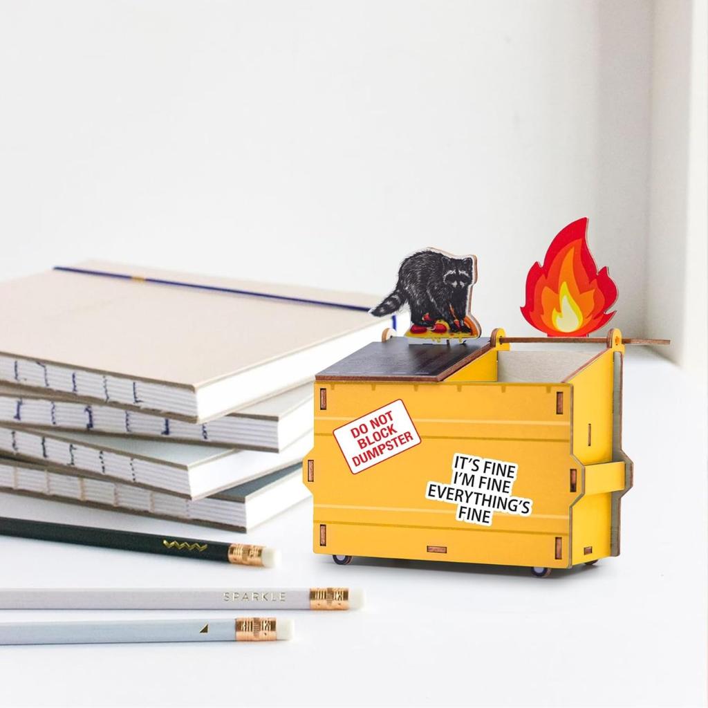 Органайзер для стола Dumpster Fire, держатель для карандашей своими руками с декором в виде енота и пламени, бесплатная наклейка в комплекте, забавный держатель для стола, подарочный кляп