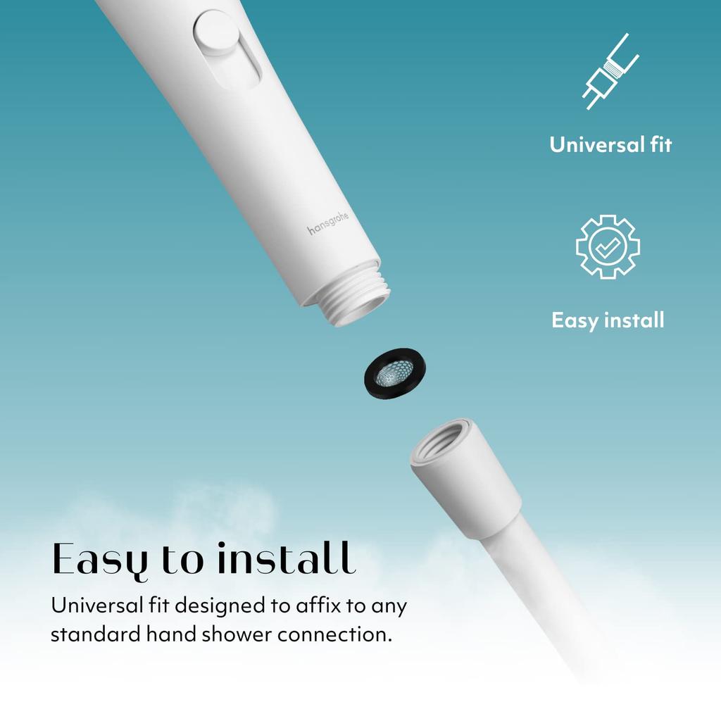 Легко установить: Просто прикрепите Wave к смесителю для душа.. Универсальное крепление не требует специальных деталей для присоединения к шлангу для душа.