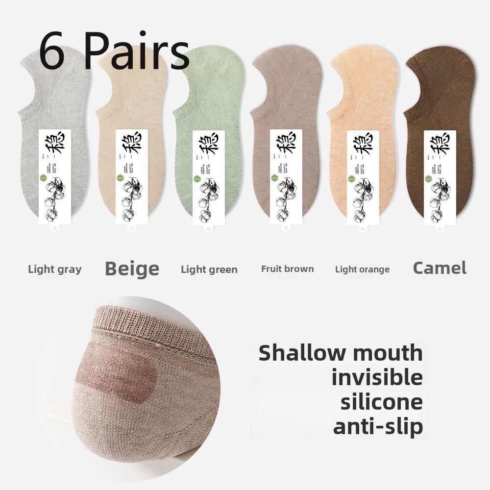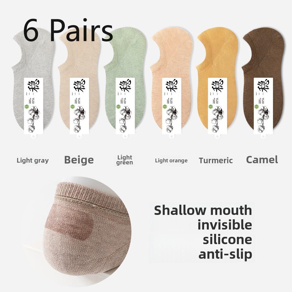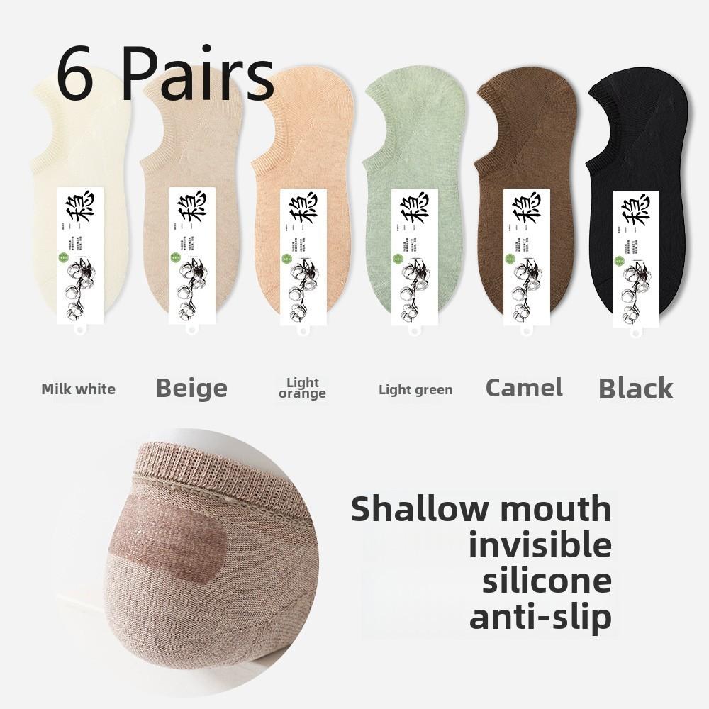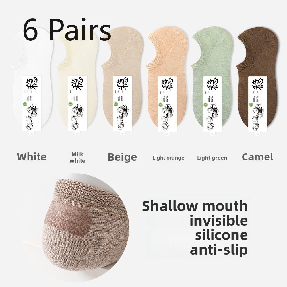 6 пар женских коротких носков весна-лето с нескользящей подошвой и каблуком, с защитой от запаха и пота, с небольшим отверстием для носка