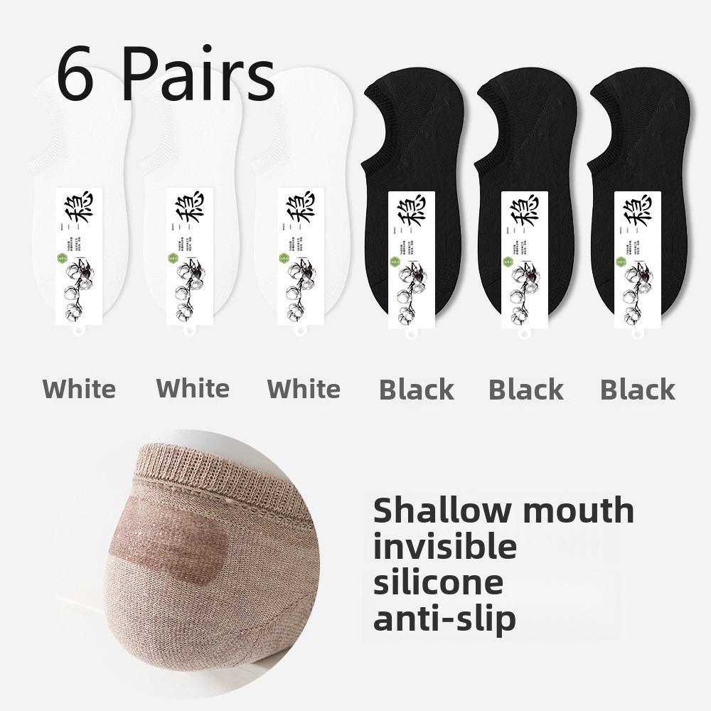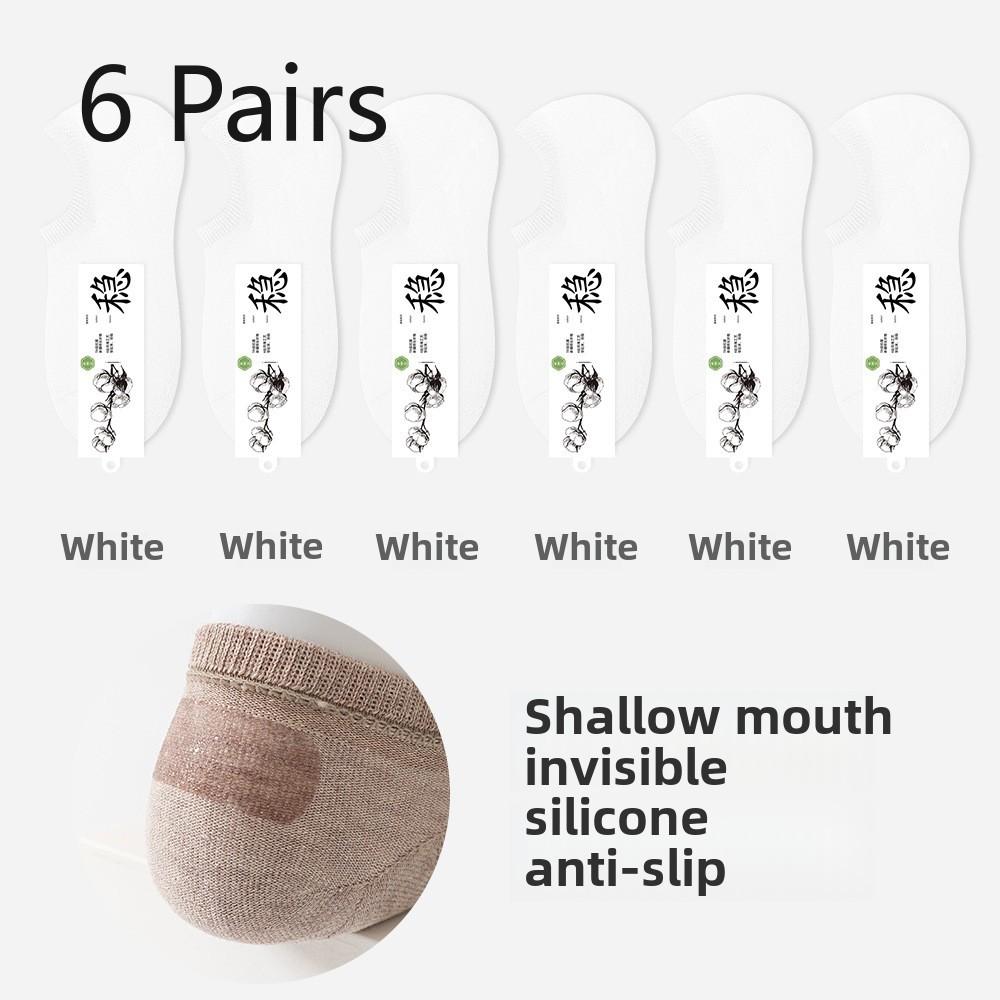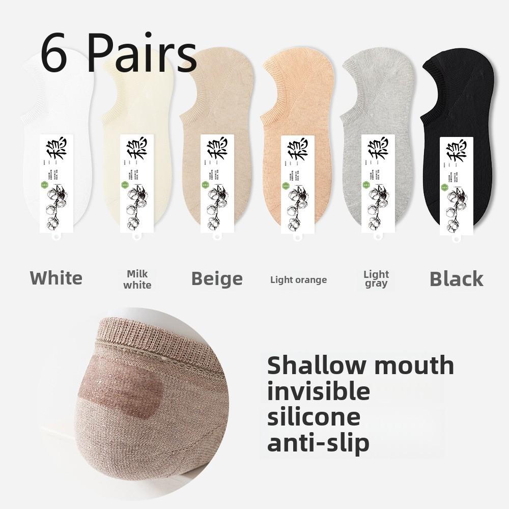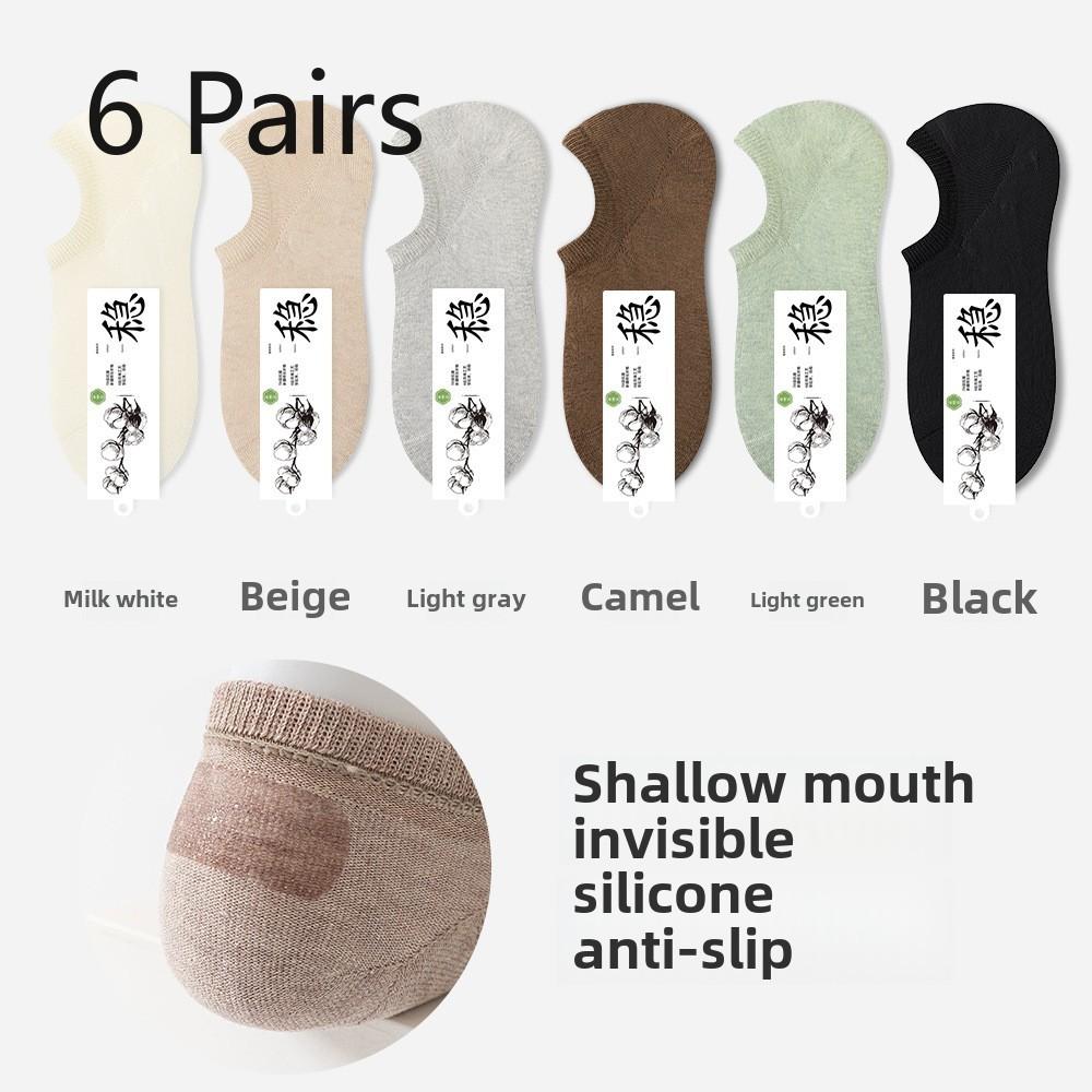 6 пар женских коротких носков весна-лето с нескользящей подошвой и каблуком, с защитой от запаха и пота, с небольшим отверстием для носка