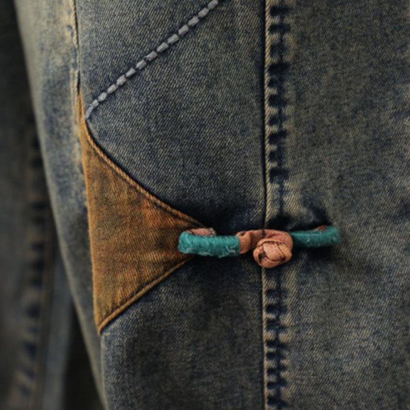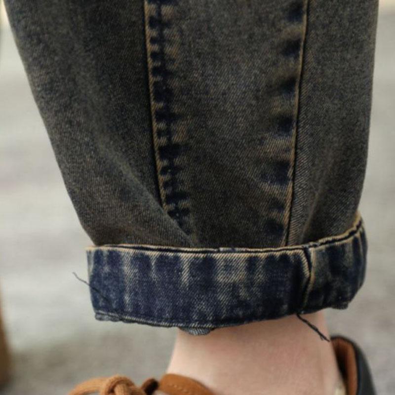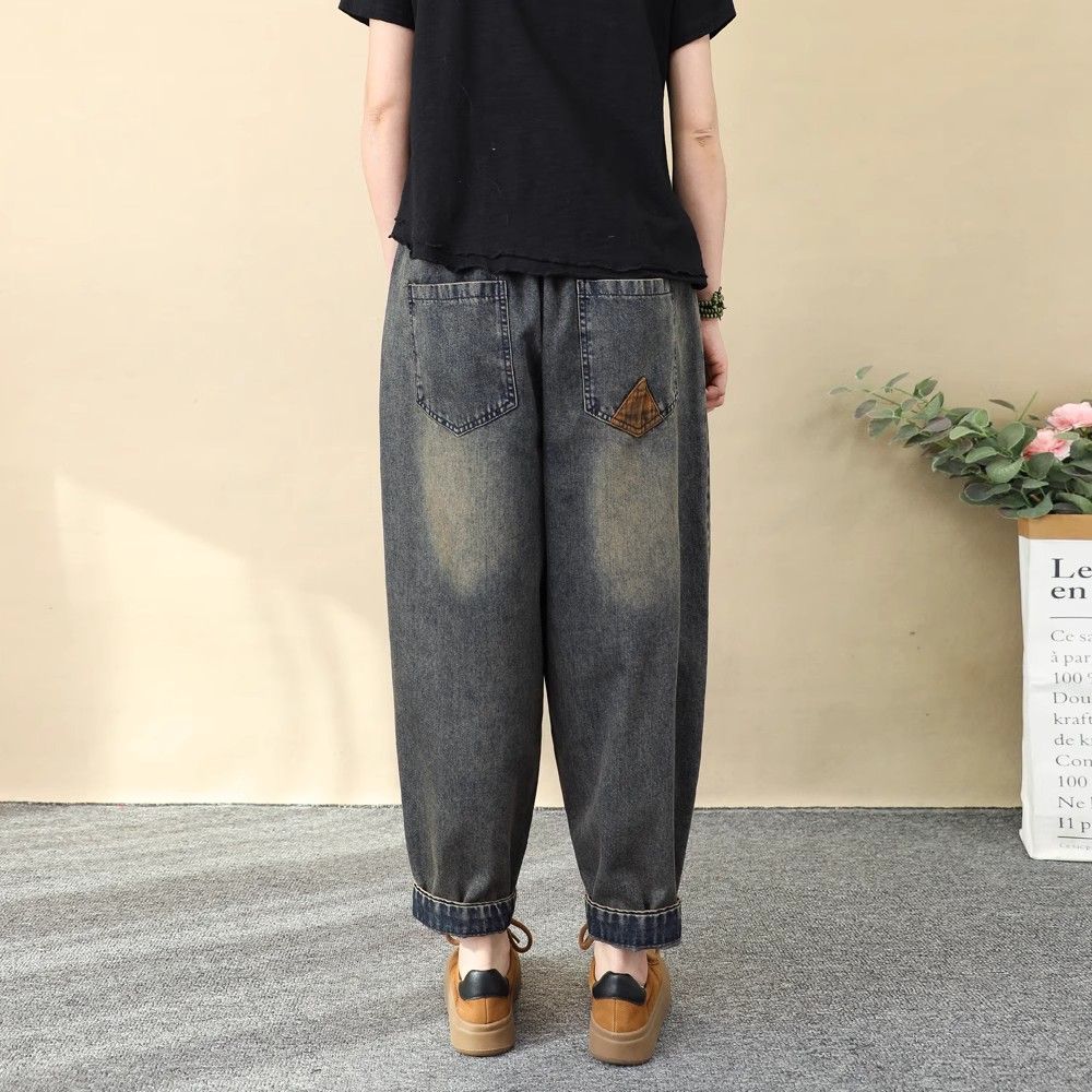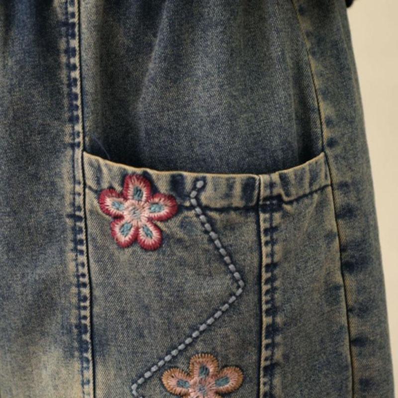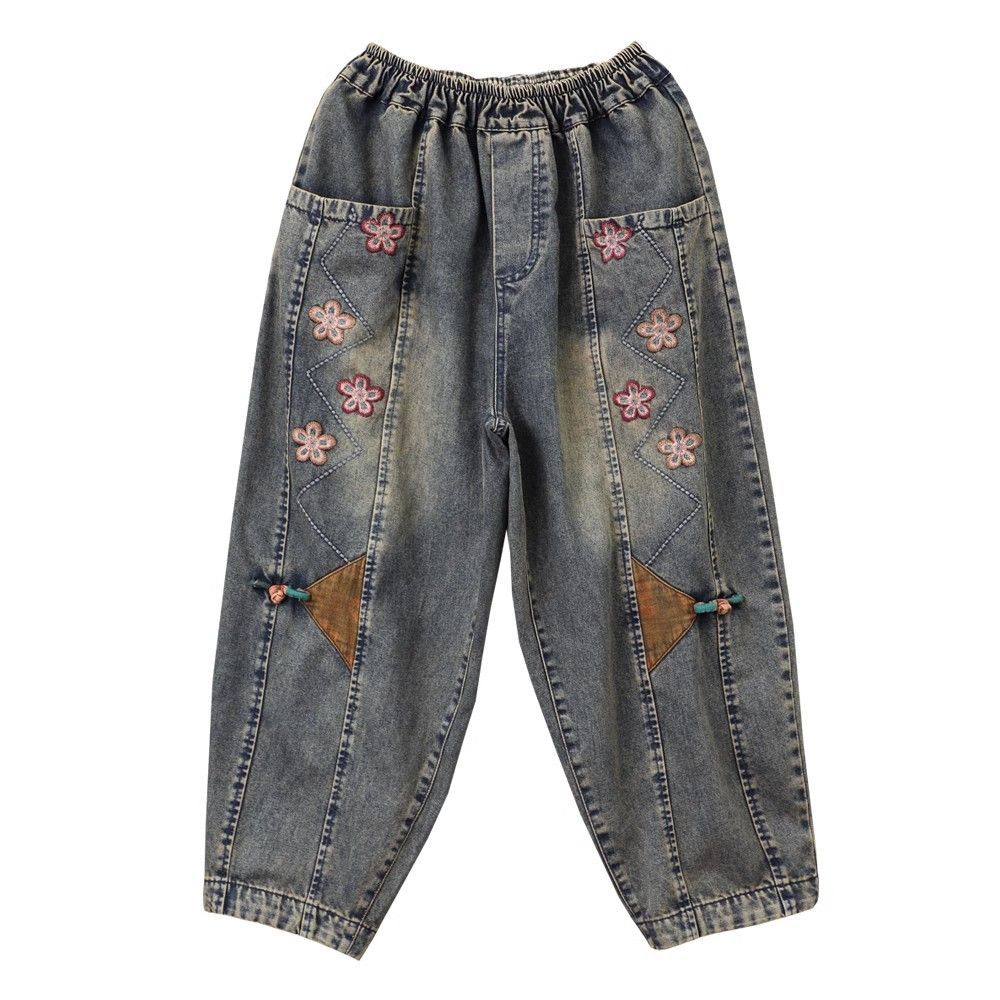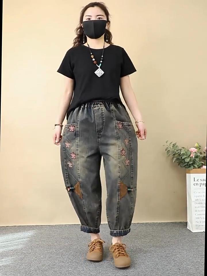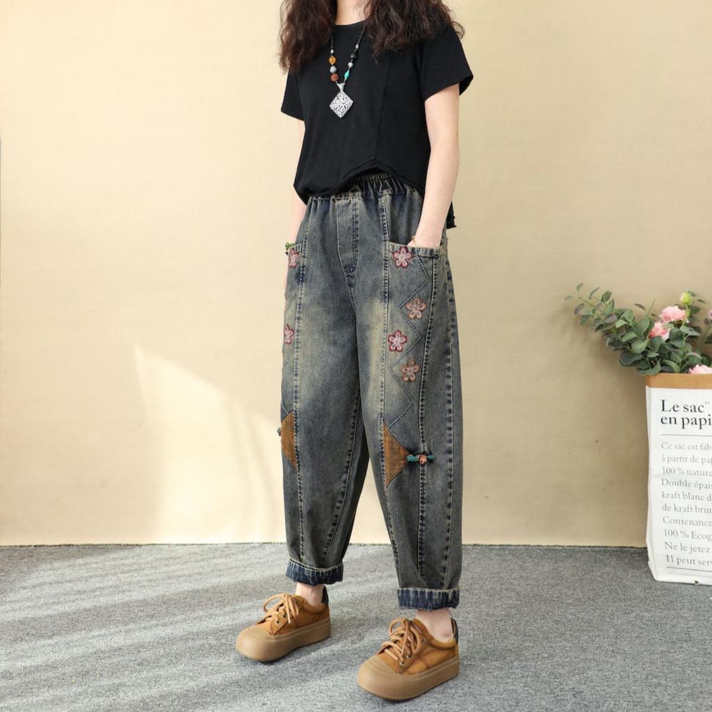 Джинсы женские в винтажном стиле с вышитыми цветами, весна 2025, свободный крой, сращивание, ткань, девять джинсовых брюк, женские