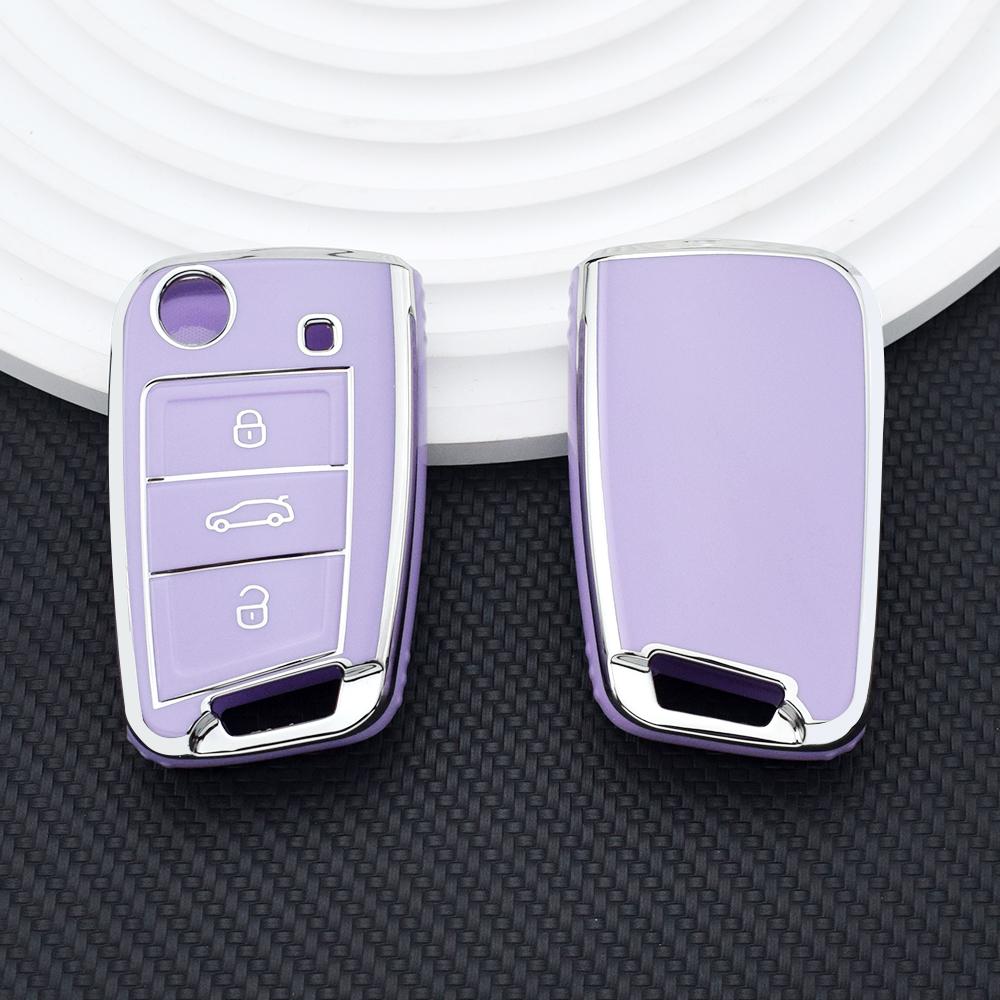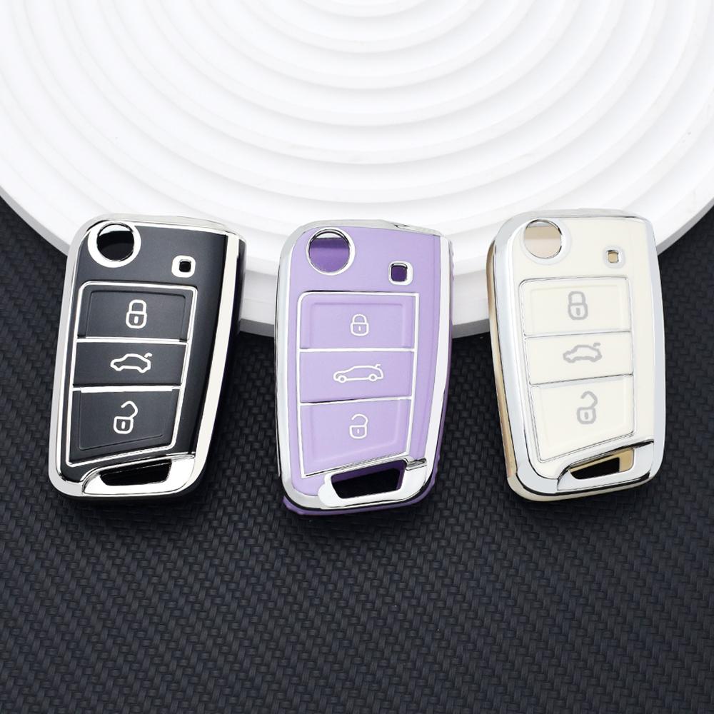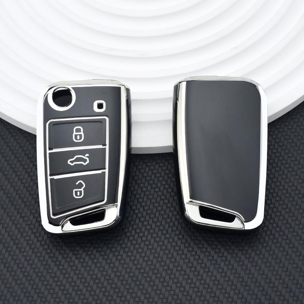 Чехол для автомобильного складного ключа из мягкого ТПУ с серебристым краем, защитная сумка для VW Volkswagen Polo Golf 7 MK7 Tiguan для Skoda Octavia A7 SEAT