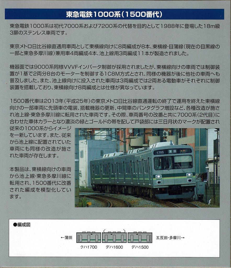 TOMYTEC Железнодорожная коллекция Tokyu Corporation 1000 серия набор (серия 1500) 3-вагонный