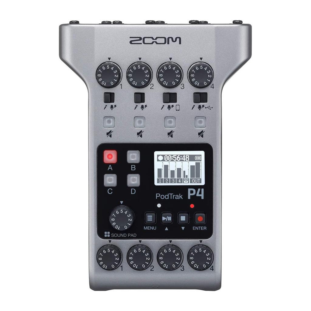 ZOOM Zoom P4 Podcast Recorder Silver Устройство для записи потокового видео с 4 микрофонами, 4 наушниками, 4 дорожками одновременной записи и звуковыми панелями, входами и выходами. — купить товар онлайн с бесплатной доставкой по всему миру!