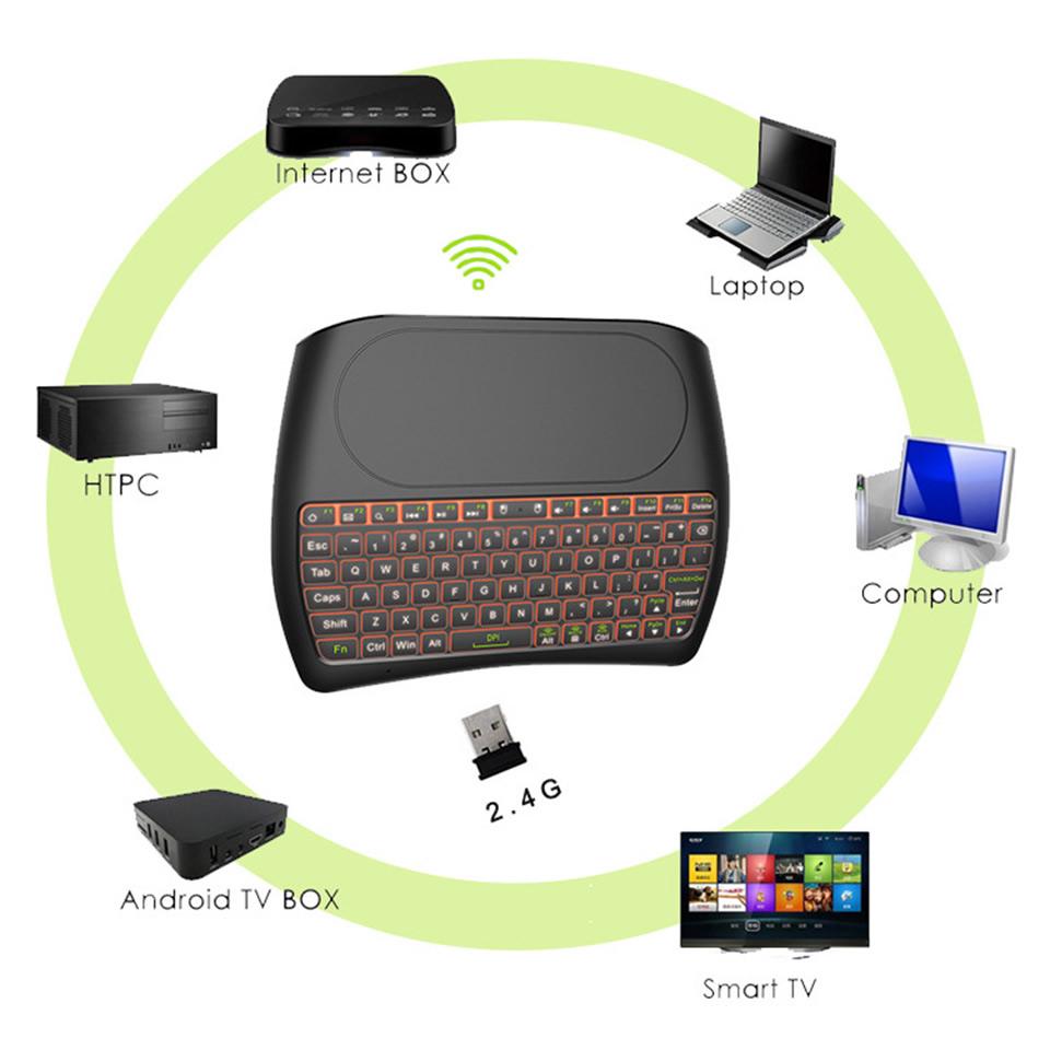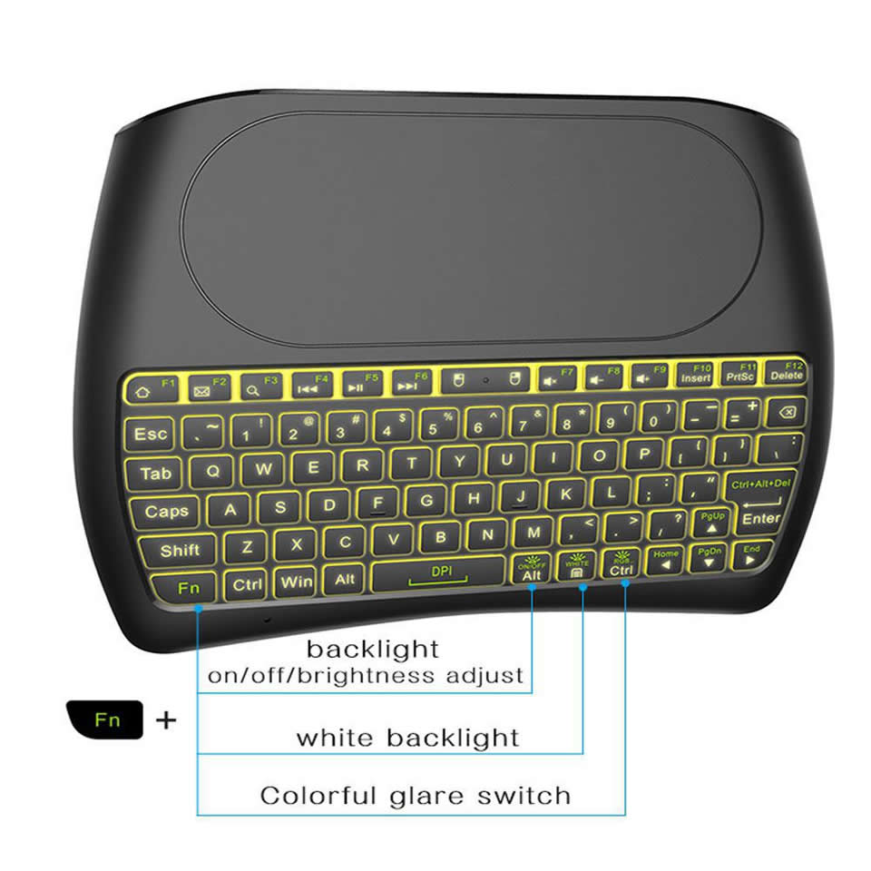 - 3 в 1 Мультимедийный пульт дистанционного управления - самая мини-беспроводная клавиатура с многофункциональной:Сенсорная панель + мышь + клавиатура +. RF 2.4G беспроводное соединение.