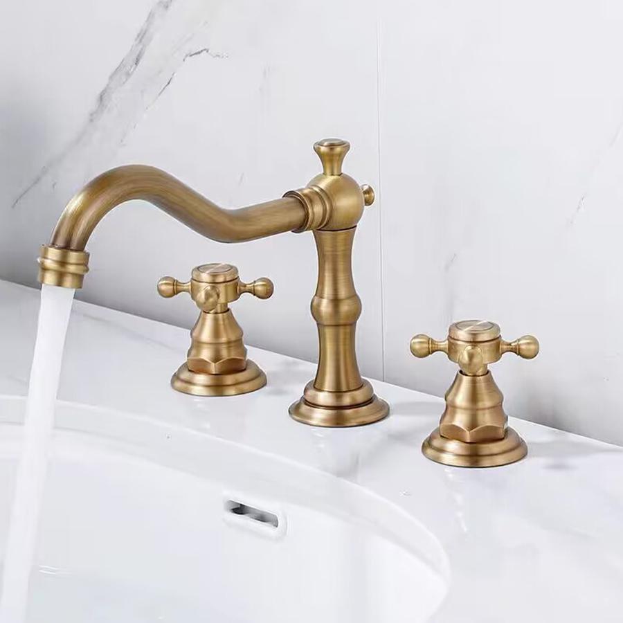 ITAX-WORLD 3 отверстия широко распространенный смеситель для раковины в ванной комнате античный латунный смеситель для раковины кран соответствующий металлический выдвижной слив с переливом