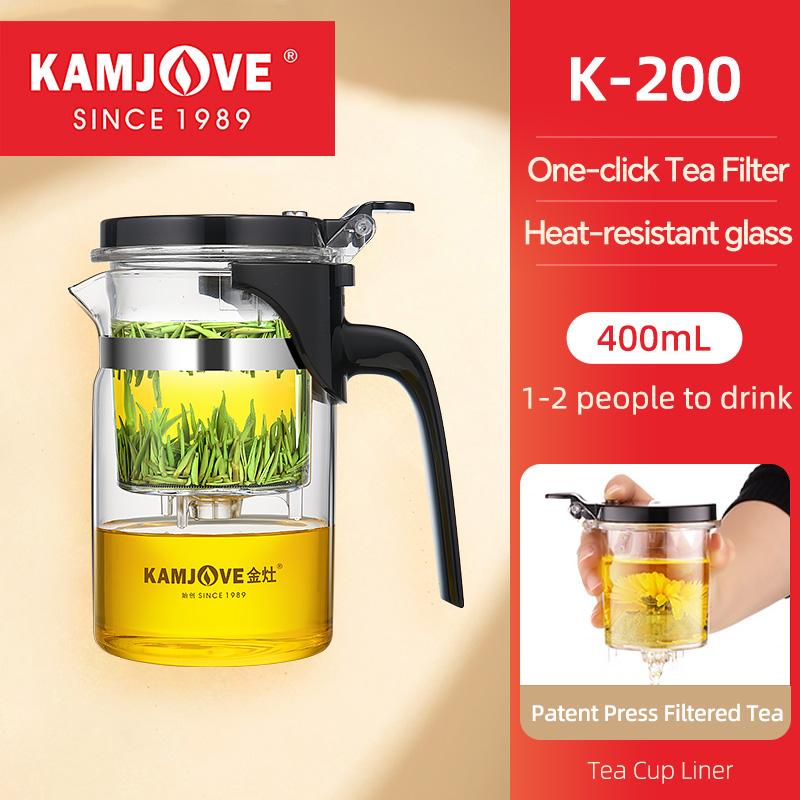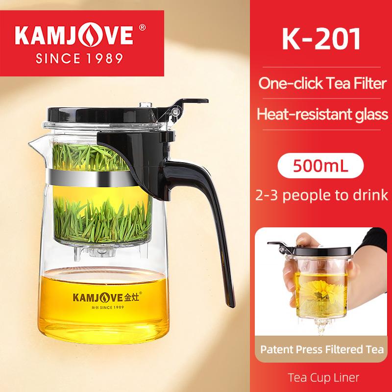 Чайник KAMJOVE, заварочный стеклянный чайник, фильтр для заваривания чая с одной кнопкой, чайник для заваривания чая, кофеварка, пресс для заваривания чая с функцией автоматического открытия, художественная чашка для чая