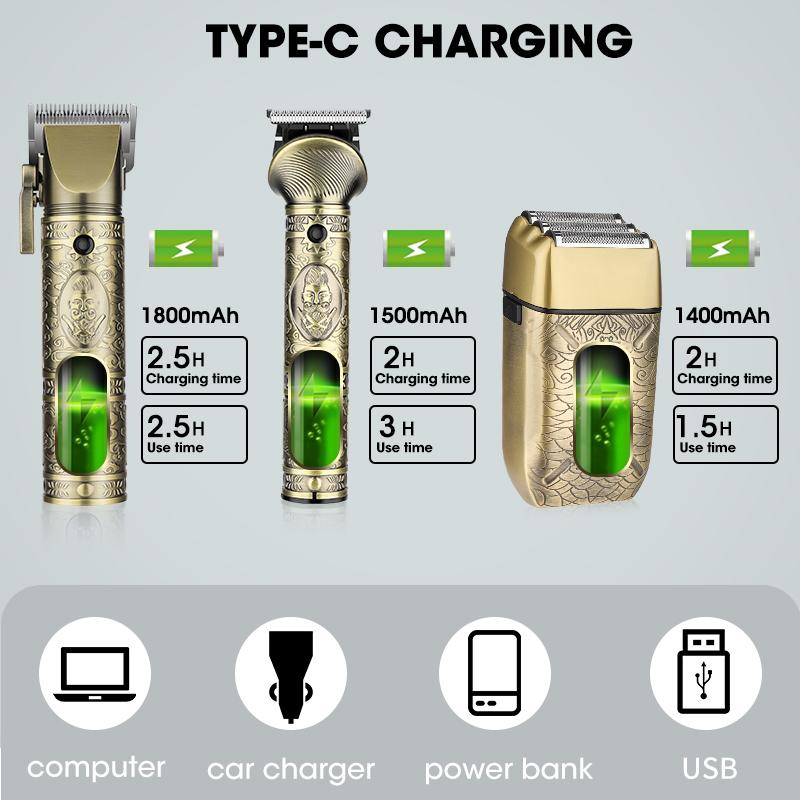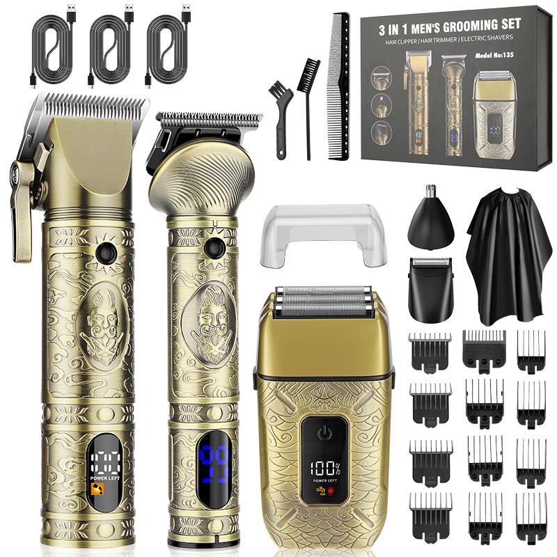 Набор для стрижки волос с ЖК-цифровым дисплеем, электрическая машинка для стрижки волос, мужская машинка для стрижки волос с гравировкой маслом, электробритва