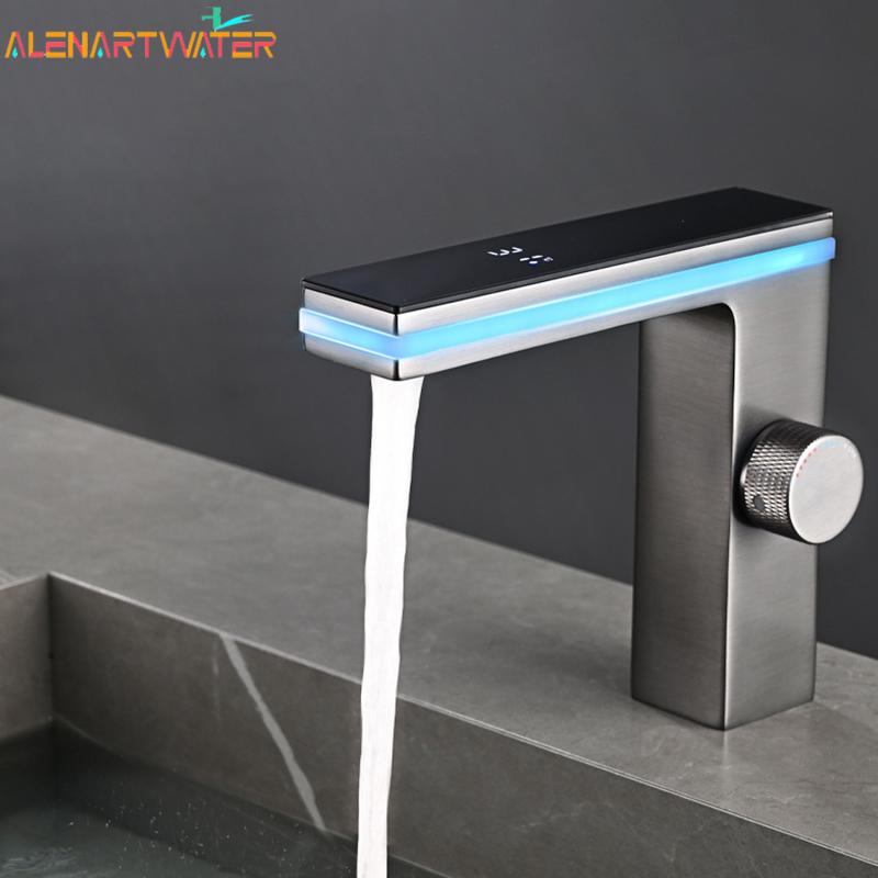 Цифровой дисплей для ванной комнаты, кран для раковины, интеллектуальный светодиодный латунный кран для раковины, смеситель для горячей и холодной воды, кран для раковины