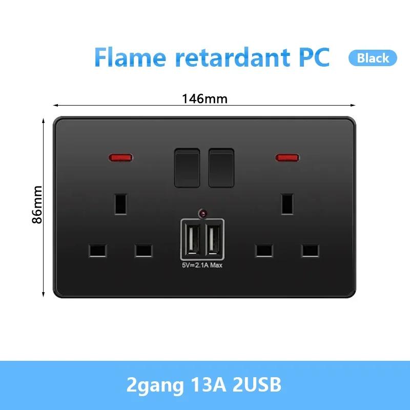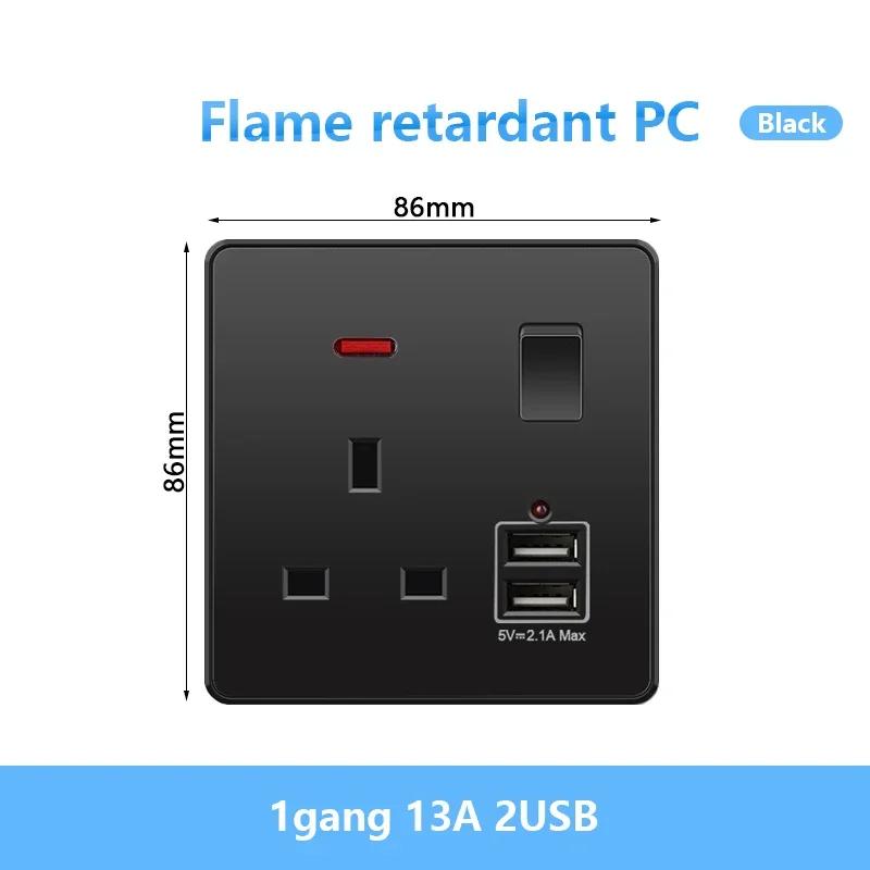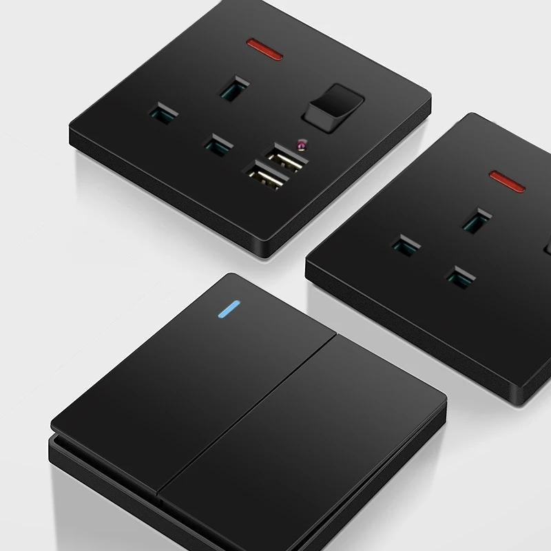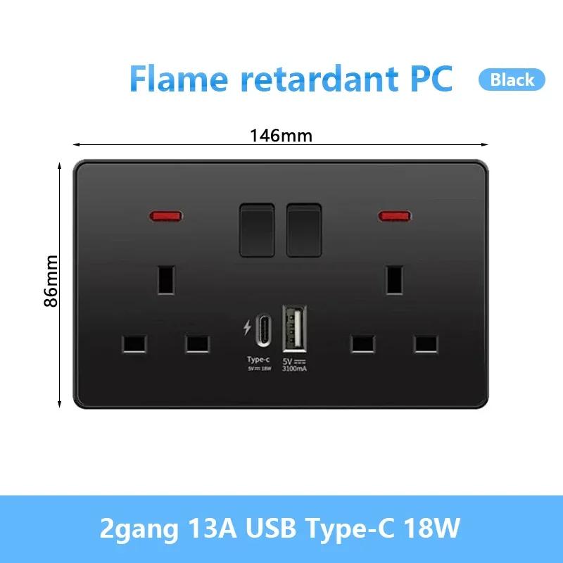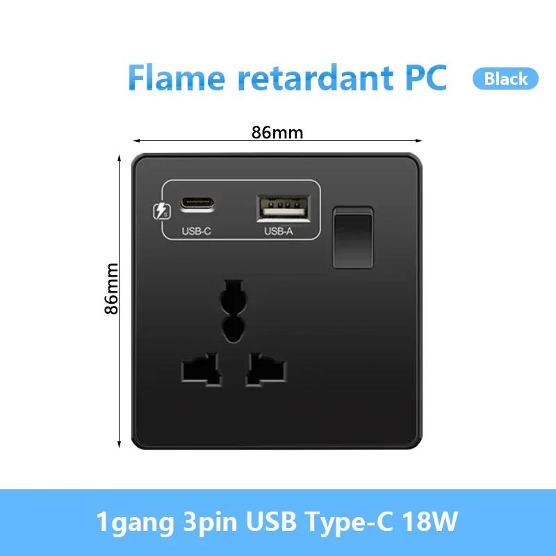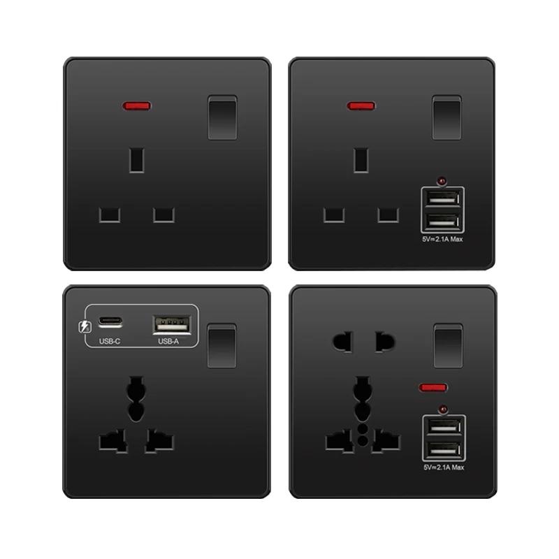 Универсальная черная USB Type-C 18 Вт интеллектуальная розетка для быстрой зарядки с двойной 5-контактной вилкой, настенный выключатель света UK Electrical Internationala