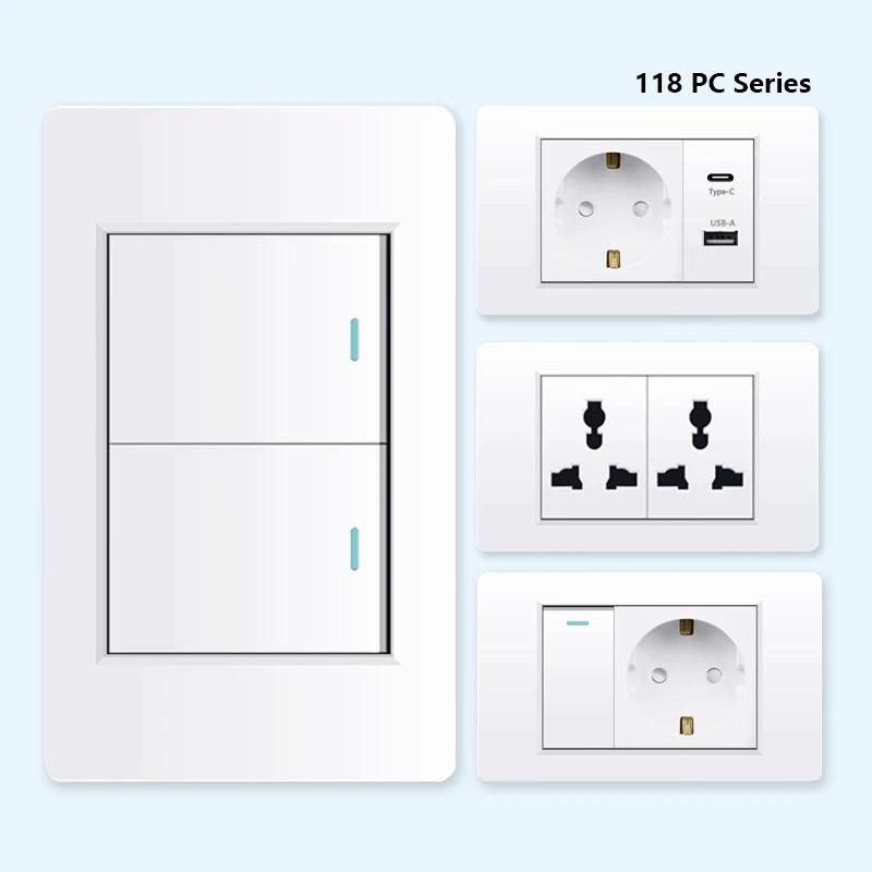 Стандарт ЕС, Корея, 4*2 настенный выключатель света, розетка, USB-разъем для зарядки типа C, 1/2/3/4/Gang 2-позиционный переключатель для панели ПК, включение, выключение, телевизор, телефон