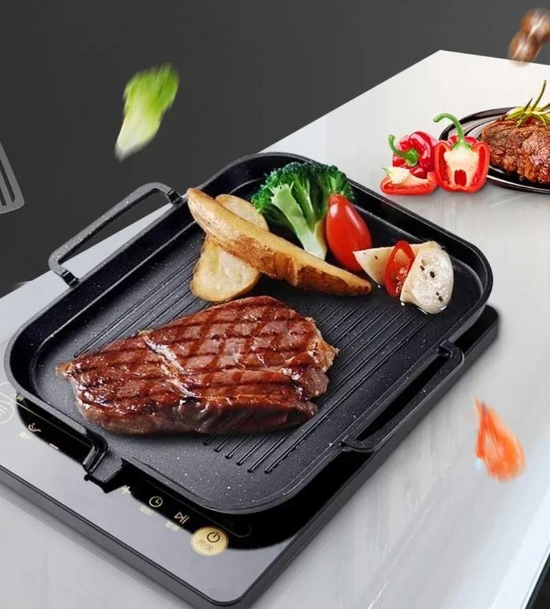 Алюминиевая сковорода для жарки с антипригарным покрытием, сковорода для барбекю, корейский противень для барбекю, квадратный противень для гриля, кухонная утварь для приготовления пищи