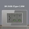 Italy Chile Socket with USB Smart Type-c 20W Fast Charging Glass Wall Electric Light Switch,Thai US Brazil Dual USB Power Socket