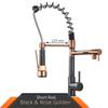 Смеситель для кухонной мойки Rozin Black and Rose Golden Spring с выдвижным краном для горячей и холодной воды с двумя изливами, монтируемый на столешницу