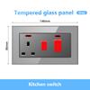 146 UK Standard 45A High Power Kitchen Electric Switch Socket 13A Wall Power Supply Cooker Glass Plastic Aluminum outlet Black