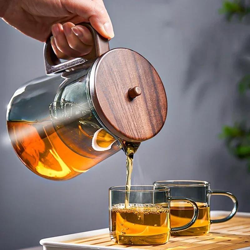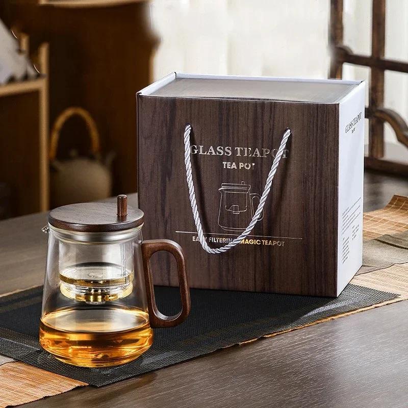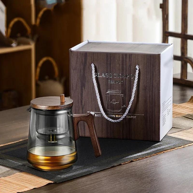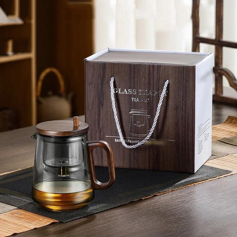1 шт. Чайник из боросиликатного стекла с функцией фильтрации чая одним нажатием и ручкой, предотвращающей ожоги, для офиса и дома, цветочный чайник в подарок