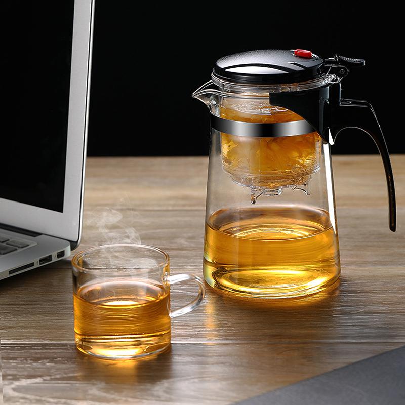 Чайник с заварочным устройством, утолщенный стеклянный нагреваемый устойчивый чайник с одной кнопкой, фильтрующий чайник для разделения чая, китайская чайная одежда в стиле кунг-фу