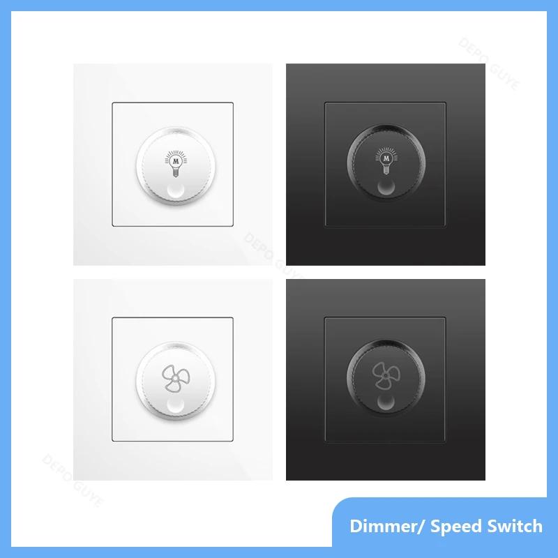 86 Тип ЕС, стандарт Великобритании, одинарный диммер, настенный выключатель света, черная/белая/серая пластиковая панель, настенный переключатель скорости вращения вентилятора