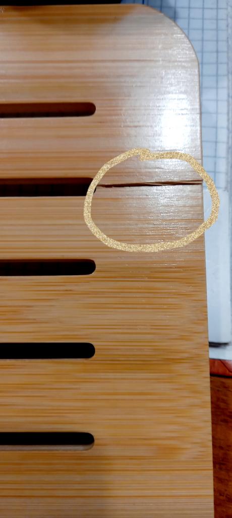 Доставили в мятой посылочной коробке. В итоге поднос со сколом по кромке, деревянная подставка треснутая. Как дарить?