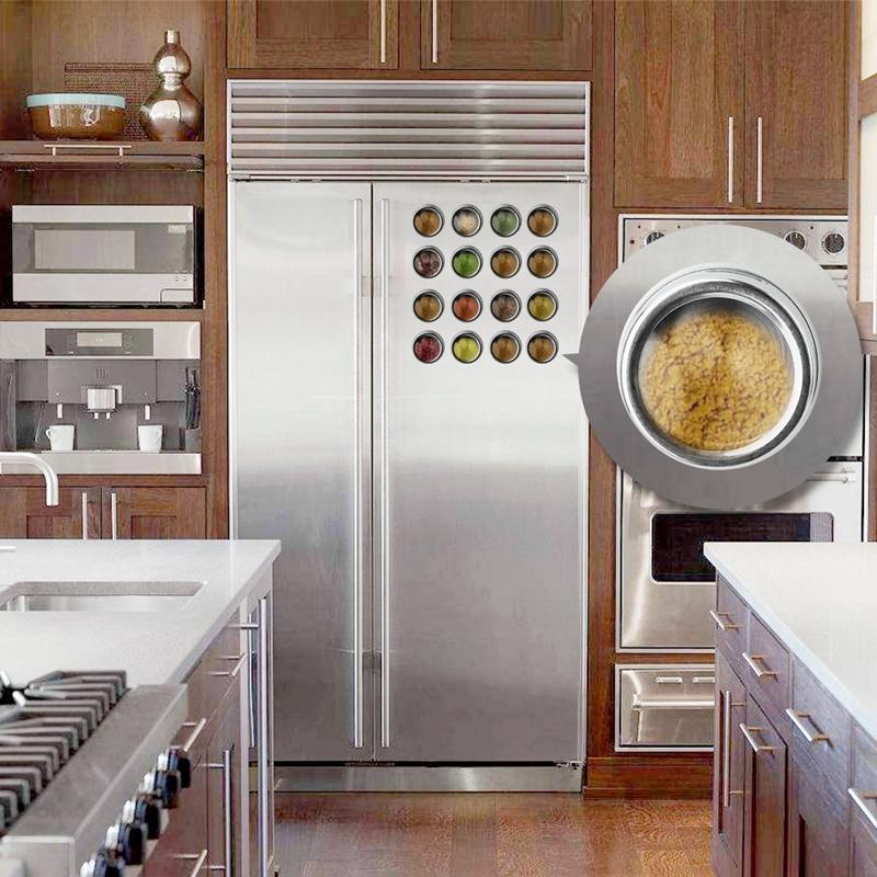 Магнитные банки для специй LMETJMA, банки для специй из нержавеющей стали с прозрачными крышками-шейкерами, банки для хранения специй и перца с этикетками для специй KC0050