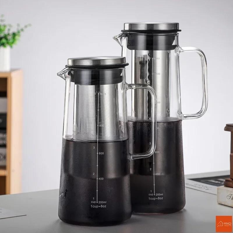 Многоразовый съемный набор для приготовления холодного кофе, кофеварка двойного назначения, кофейник с фильтром, чайник для приготовления эспрессо и льда, стеклянные кофейники