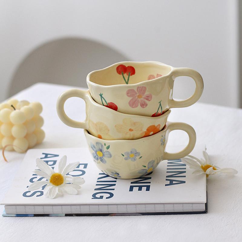 Керамические кружки, кофейные чашки, корейский стиль, завтрак, сок, домашние чашки, сложенные вручную, цветочная чашка для чая с молоком, для детей, посуда для кухни