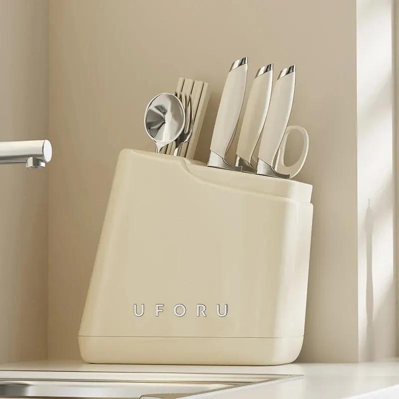 Держатель для кухонных ножей на столешницу, многофункциональный держатель для палочек для еды, ложка, встроенная подставка для сушки, пластик