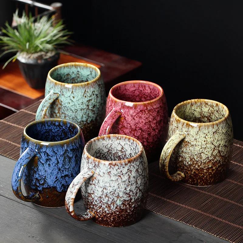 480 мл ретро-керамическая кружка для замены печи, глазурованная, ручная работа, бытовая кружка для завтрака, молока, воды, кофе, чая, напитков для офиса, пары, Gfit