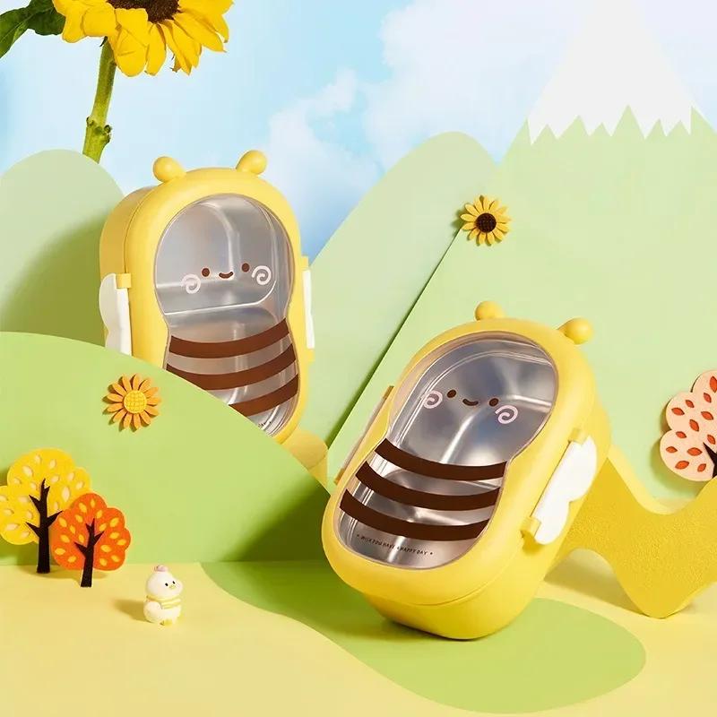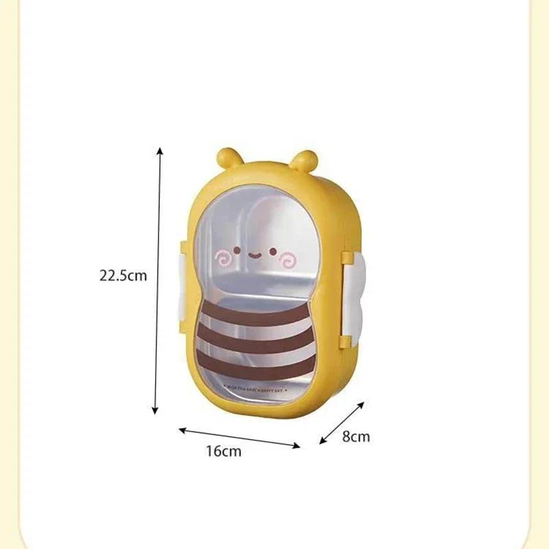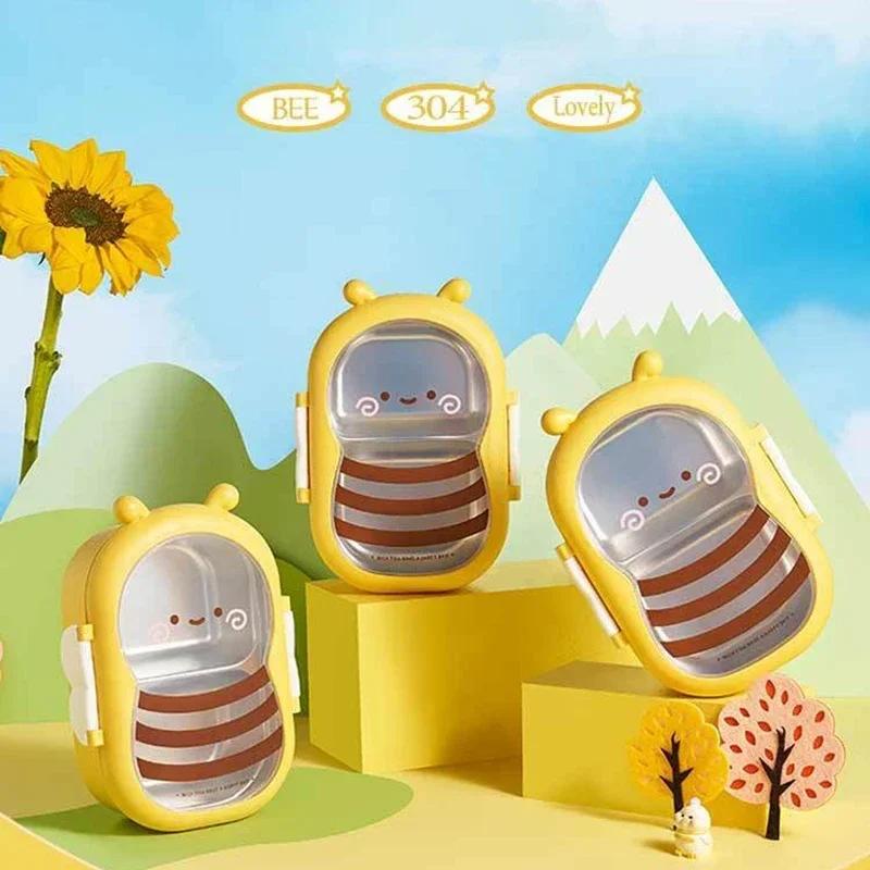 Милый дизайн маленькой пчелки, ланч-бокс для детей, портативный, с двумя сетками, из нержавеющей стали, герметичный, герметичный, контейнер для школьной еды Bento