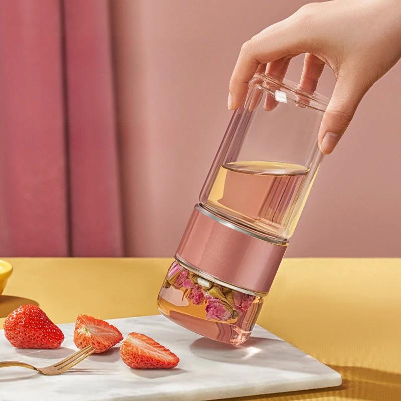 Современная простота чашка для разделения чая цветочный чай двухэтажный стеклянный женский милый термостойкий портативный стакан для воды новый