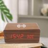 Деревянный цифровой будильник с питанием от USB и беспроводной зарядкой, настольные часы с 12/24-часовым голосовым управлением и режимом даты и ночного видения
