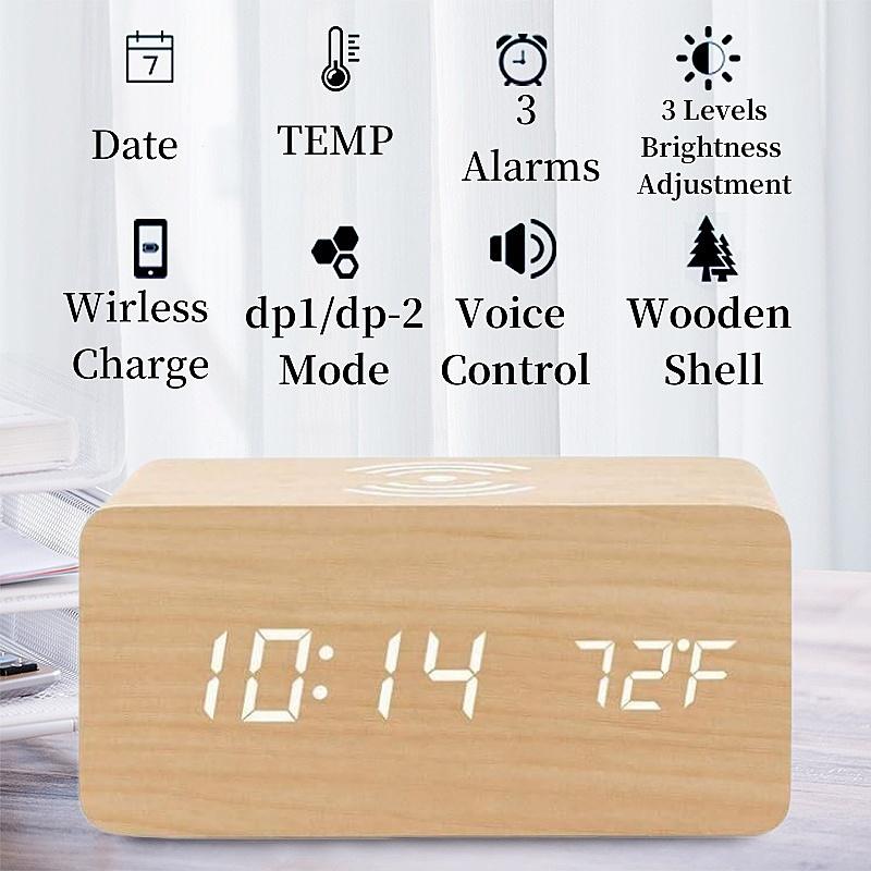 Деревянный цифровой будильник с питанием от USB и беспроводной зарядкой, настольные часы с 12/24-часовым голосовым управлением и режимом даты и ночного видения — купить товар онлайн с бесплатной доставкой по всему миру!