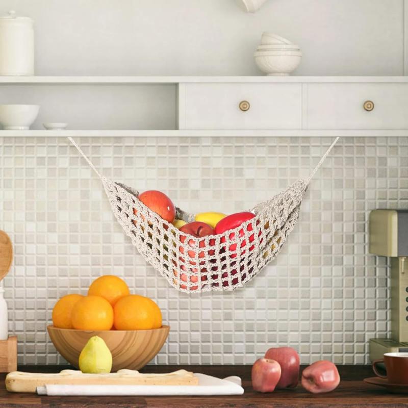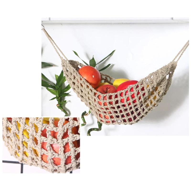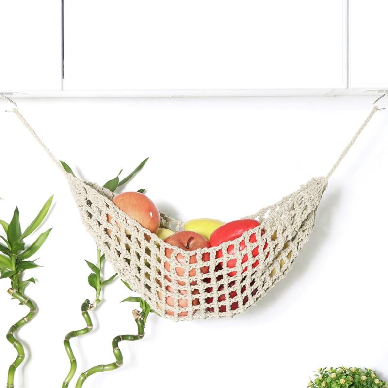 Сетка-гамак для овощей с кисточками ручной работы, подвешиваемая под шкафом корзина для фруктов, органайзер для кухонного хранения, подвесной мини-гобелен, декор