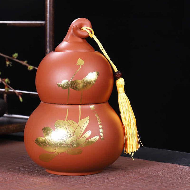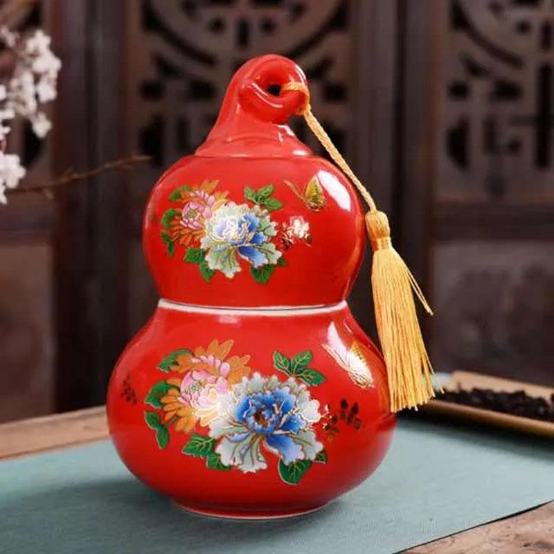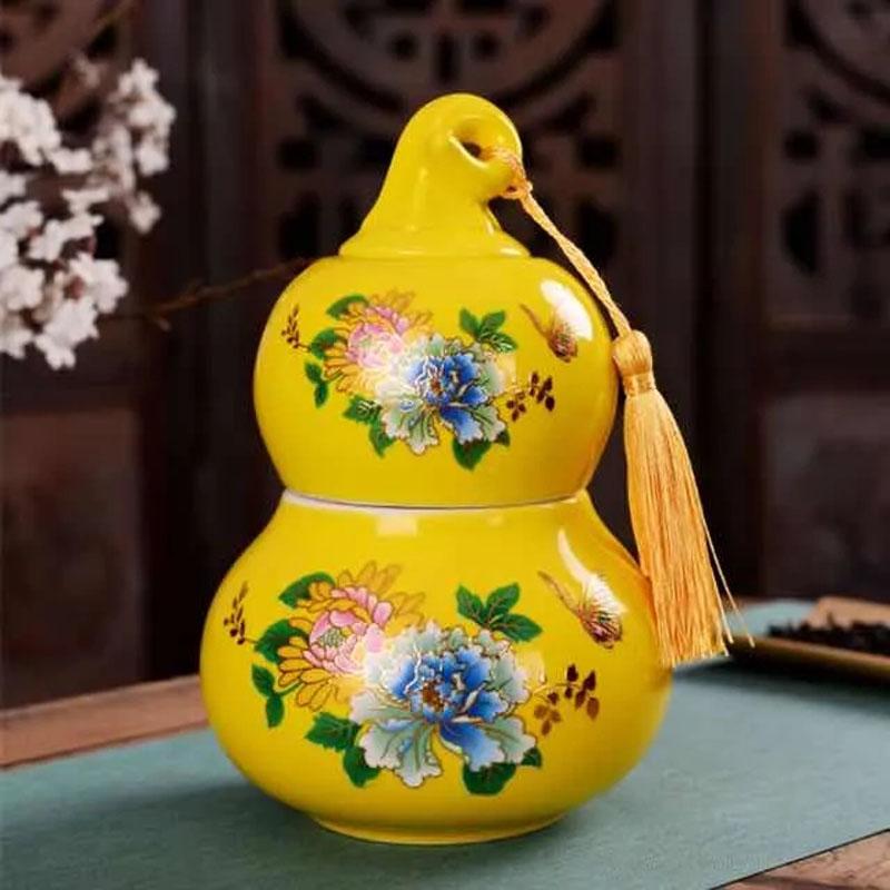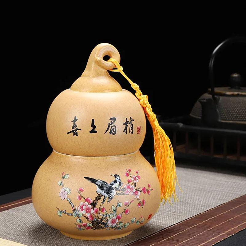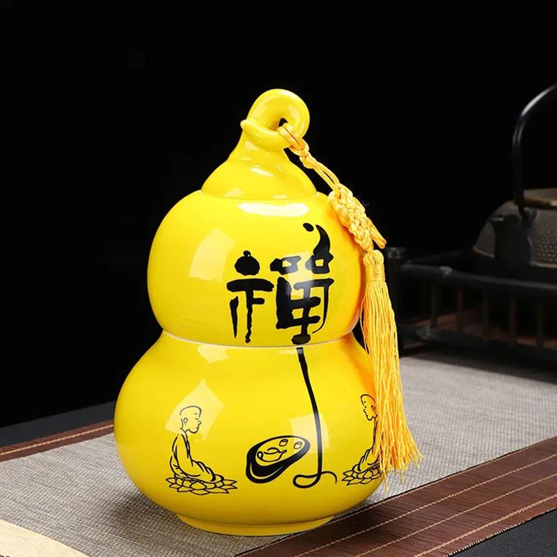 Двухслойная чайная банка в форме тыквы, керамическая емкость для хранения чая, нетканая крышка, герметичная банка для чая, фарфоровые украшения, горшок для хранения орехов