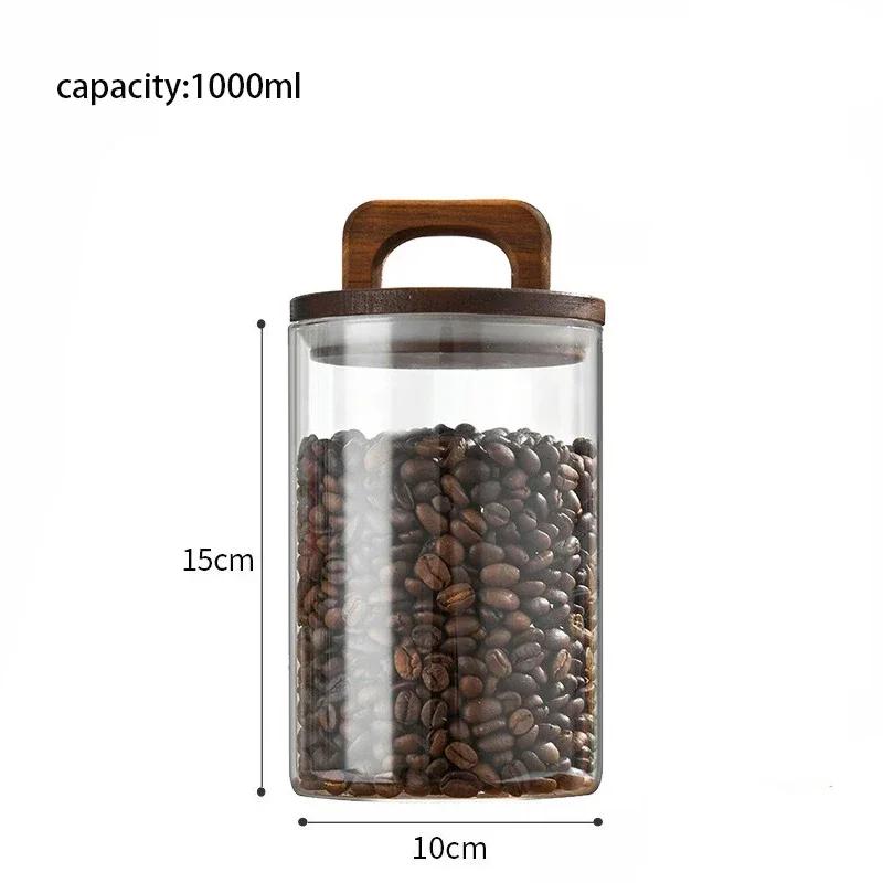 Прозрачный герметичный резервуар для кофейных зерен, стеклянные банки для хранения продуктов с деревянной крышкой, влагонепроницаемый контейнер для бобов, риса, сахара
