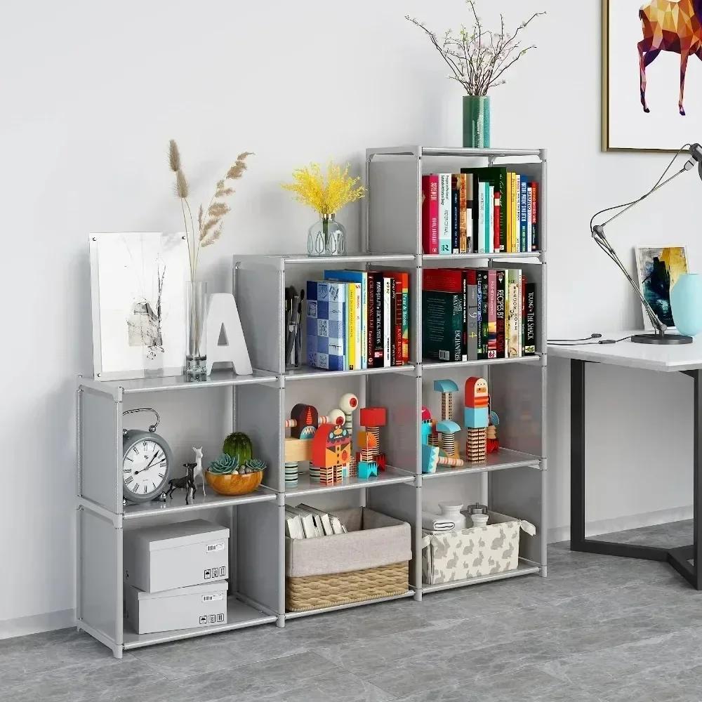 Простая книжная полка, металлический стеллаж для хранения, собранная полка для гостиной, многослойная настольная настенная полка, экономящая место, книжный шкаф-органайзер
