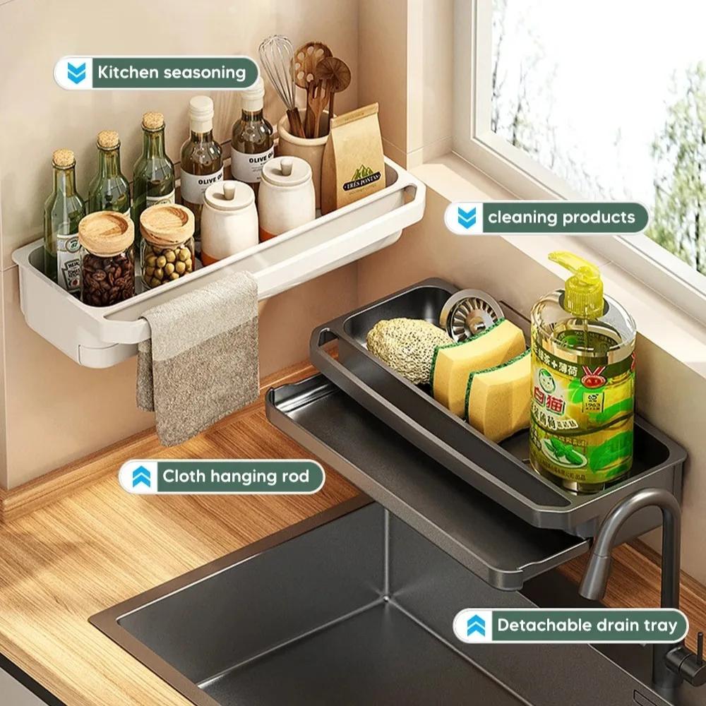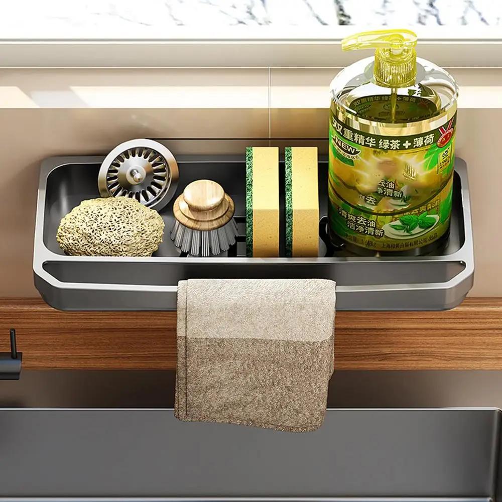 Кухонная вешалка для одежды с подвесным стержнем, настенная, водонепроницаемая и устойчивая к ржавчине, полка для губки, органайзер для крана, аксессуары для кухонной мойки