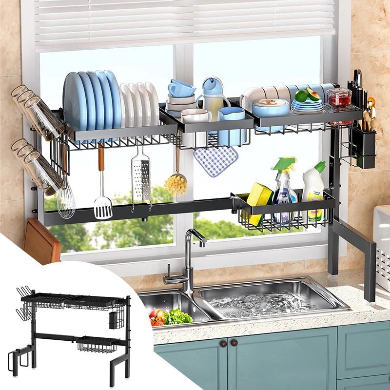 Полка для хранения на кухне над раковиной, растягивающаяся полка для сушки посуды, нож для посуды, ложка, полка для мойки, кухонная утварь и аксессуары — купить товар онлайн с бесплатной доставкой по всему миру!
