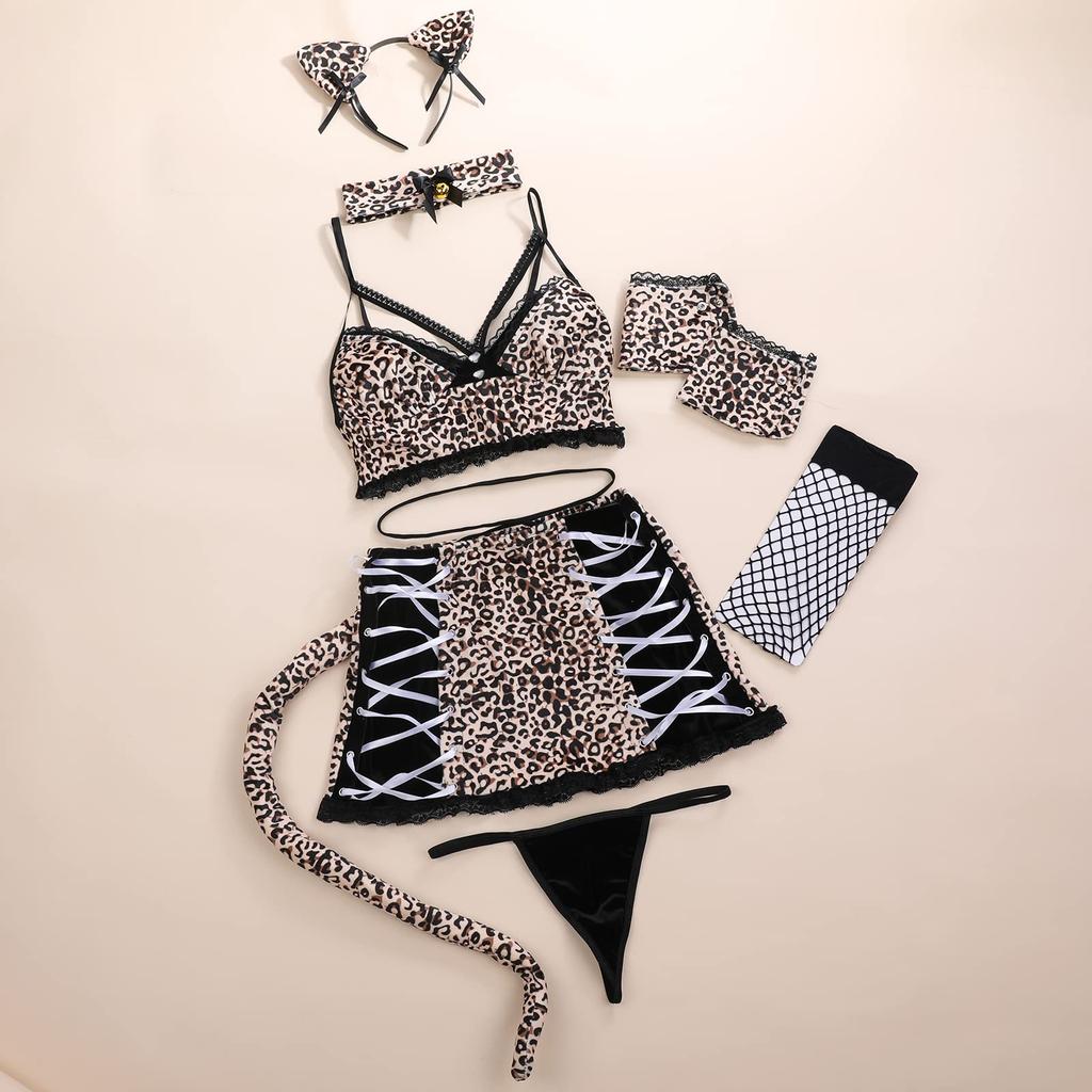 Косплей Сексуальный Кот Тигр Леопардовый Принт Кот Эротический Секс Обучение Соблазн Экстремальный Маленькая Грудь Кот Смелый Нижнее Белье Обтягивающее Нижнее Белье Babydoll