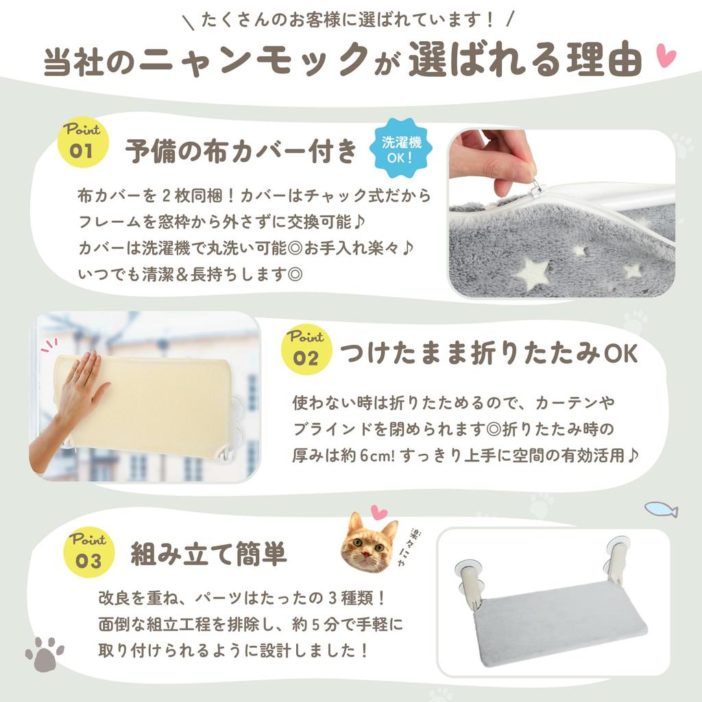 🐱 [Легко чистить и поставляется со сменным чехлом] После многократных улучшений Ханмоку состоит всего из 3 частей. Может быть установлен примерно за 5 минут.. Устраняет утомительные процессы сборки и минимизирует время сборки. Коврик можно снять с помощью молнии и постирать.. В комплект входит чехол, который можно стирать и заменять, поэтому вы можете легко заменить его, когда он загрязнится, обеспечивая постоянную чистоту и продлевая срок его службы.. Крышку можно легко и удобно заменить, не снимая раму с окна.. Существует два типа тканевых чехлов: сетка и бархат, в комплект входит по одному экземпляру каждого вида. Сетка — это воздухопроницаемый материал, который не вызывает заложенности носа и быстро сохнет.. Бархат теплый и мягкий на ощупь.. Часть со звездным узором светится ночью флуоресцентно.