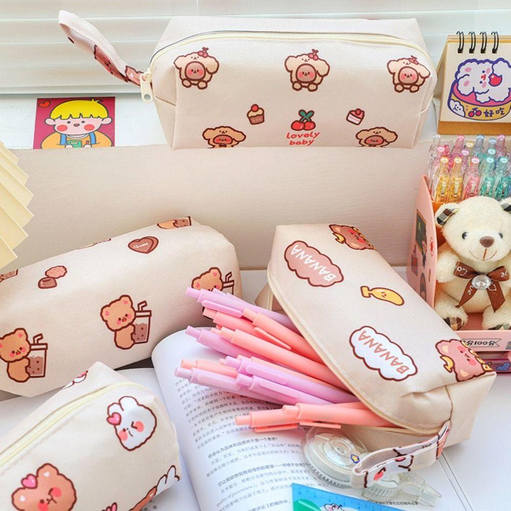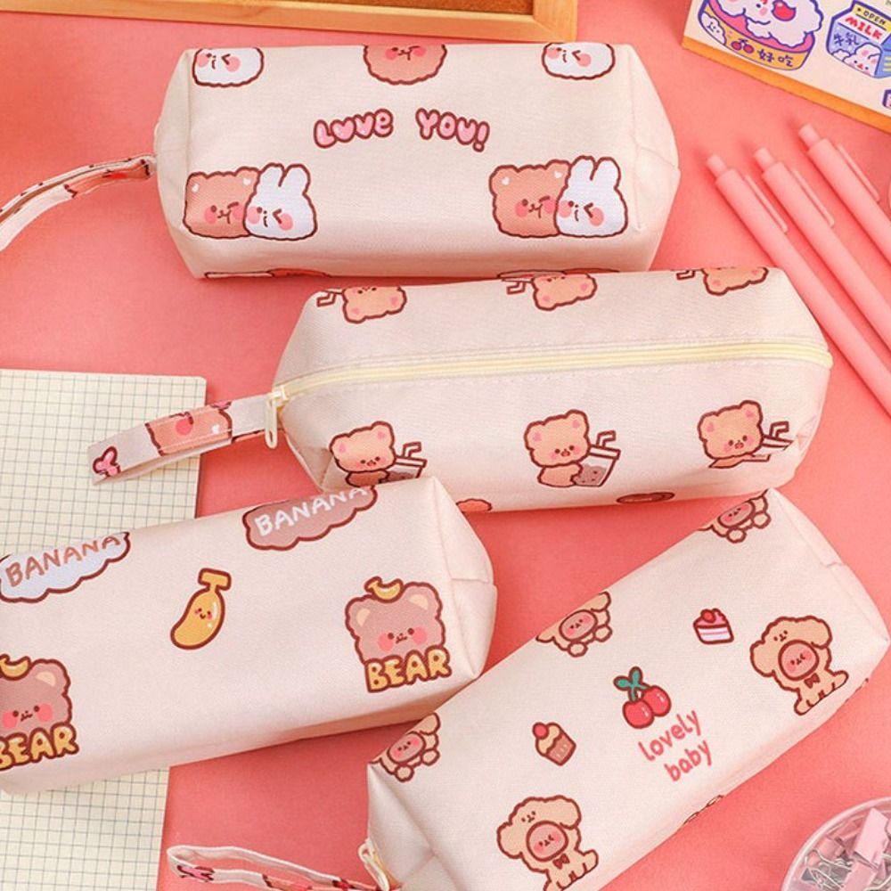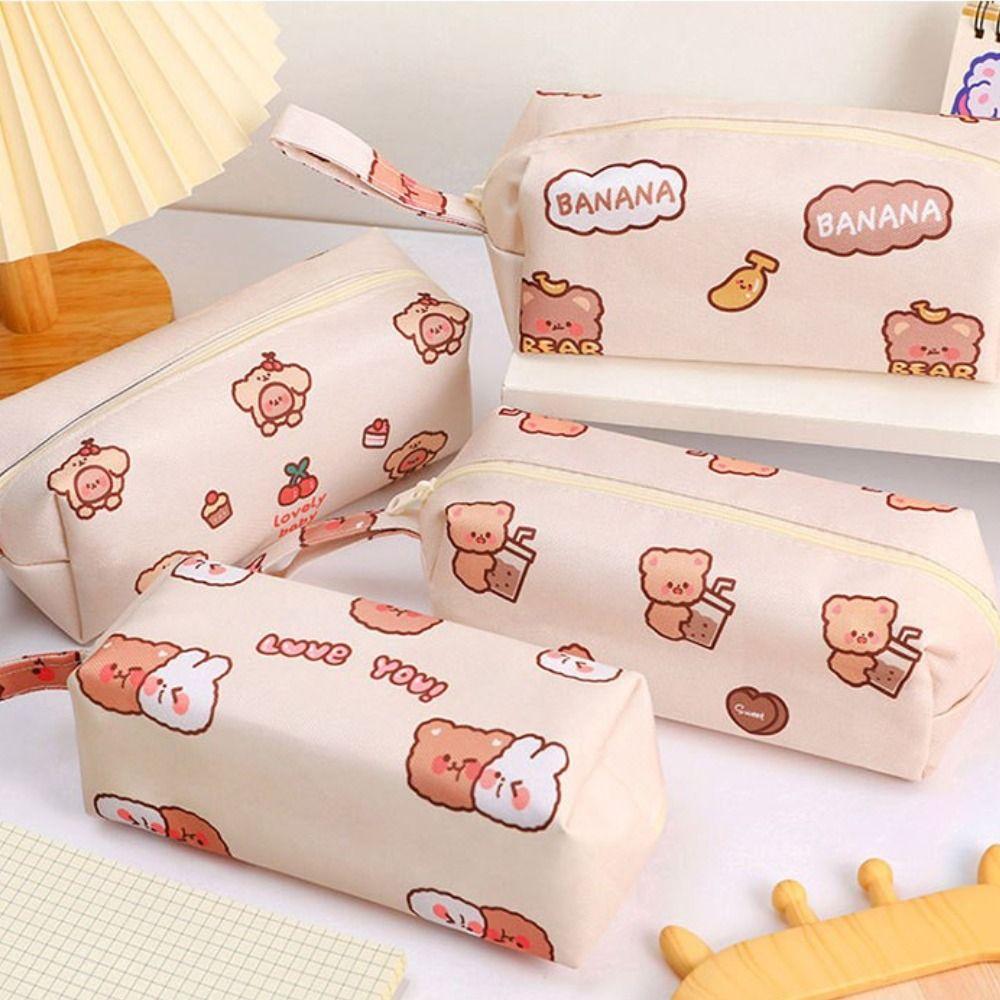 Bags Bear Pattern Korean Style Large Capacity Stationery Bag Pencil Pouch Comestic Bag Pencil Case