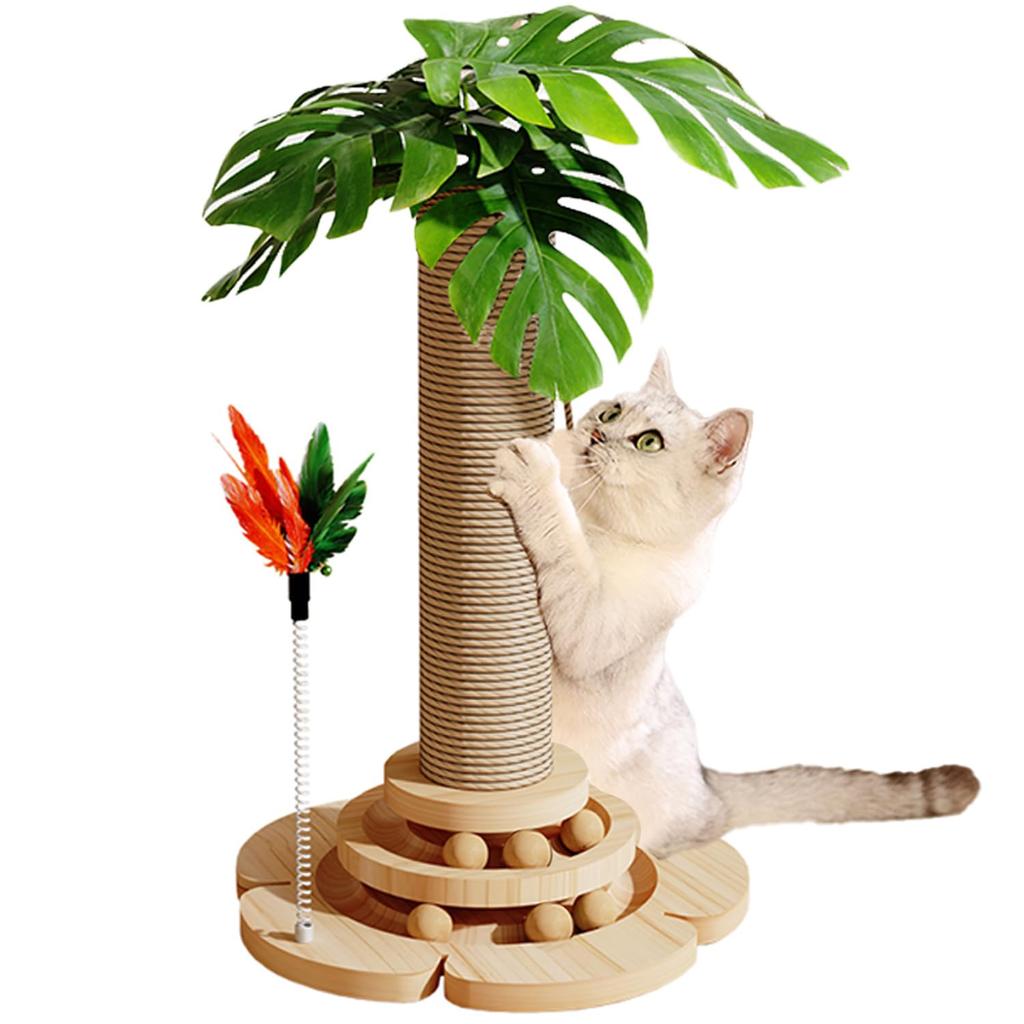 Кошачья царапающая игрушка для кошек Реалистичные листья и вращающийся кошачий коврик для кошек Легко собрать Столб, Дерево, В комплекте, Игрушка, Игрушка, Материал, Одиночество,