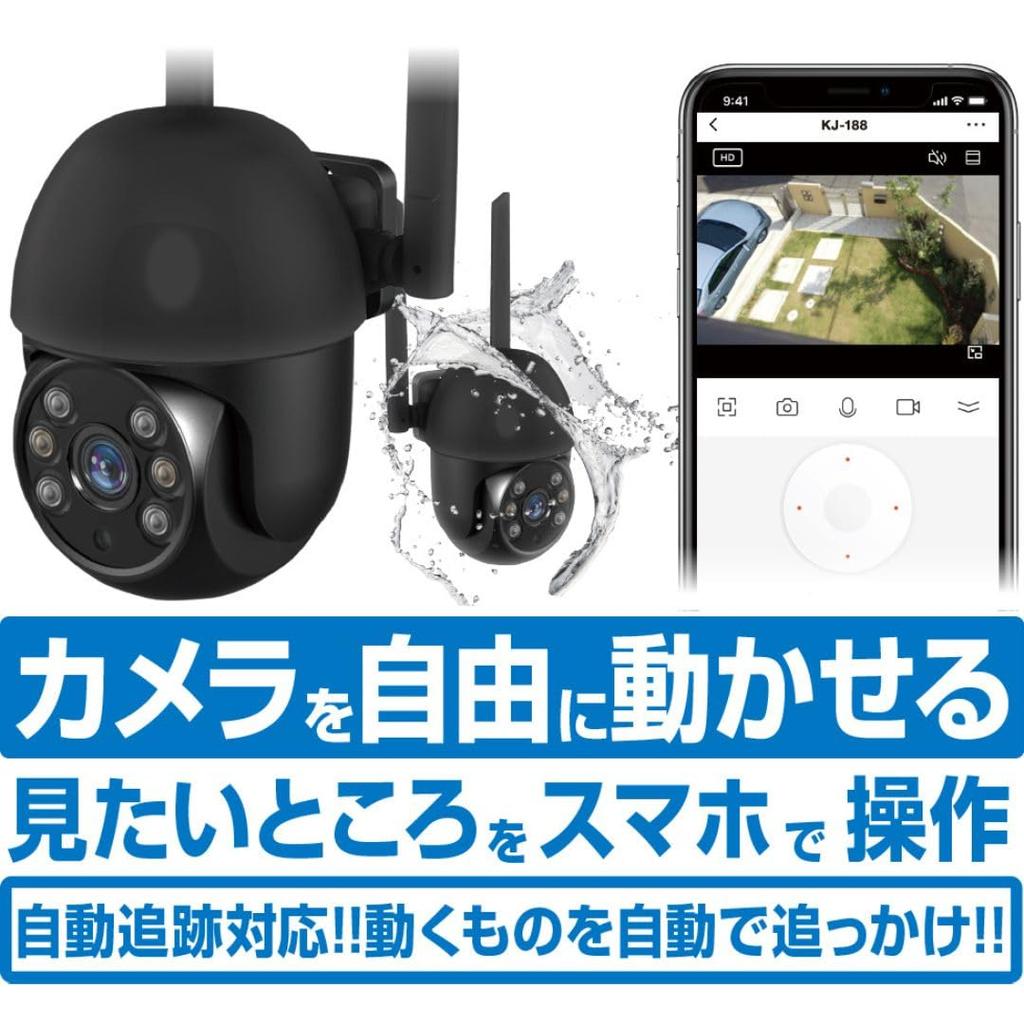 Kashimura Smart Camera Brightness Black Rating IP65 Compatible Smartphone Link Automatic Tracking Function Infrared Mode Waterproof/Swing Head/High
