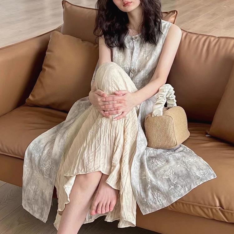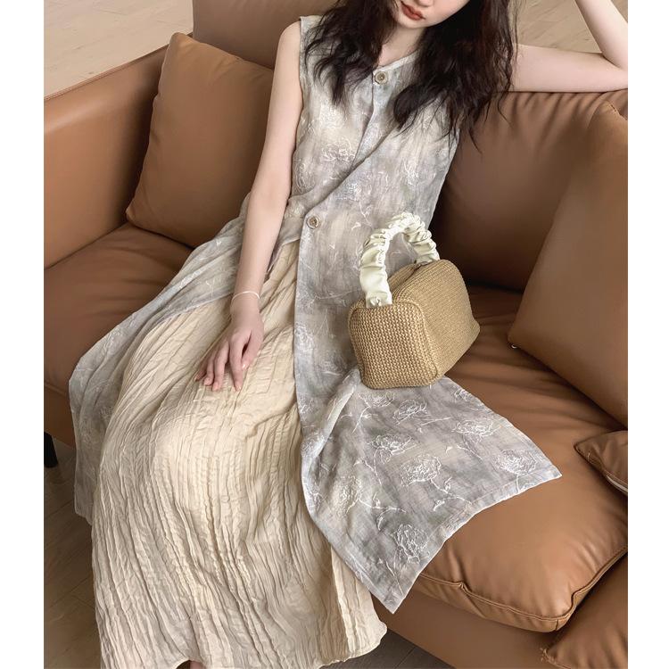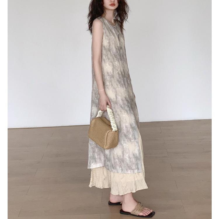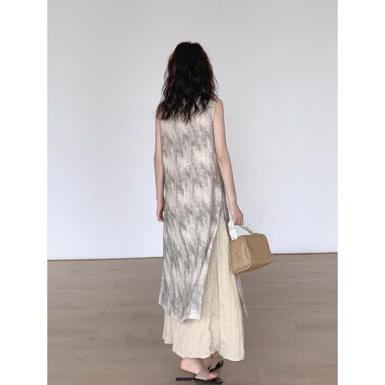Новое китайское платье-жилет без рукавов, женское тонкое платье на животе, ложное платье из двух частей, летние платья средней длины