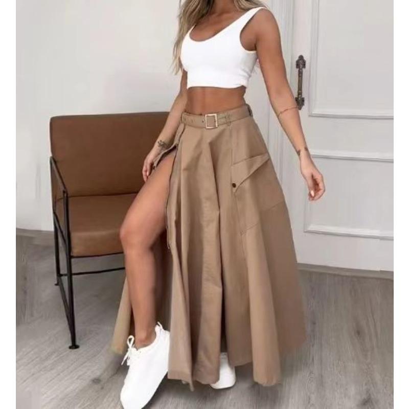 Летний женский темпераментный элегантный жилет без рукавов однотонный комплект с разрезом на поясе и юбкой до половины тела