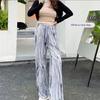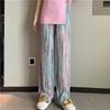 Широкие брюки в радужную полоску, женские летние свободные брюки с высокой талией, тонкие драпированные повседневные брюки с принтом тай-дай и радужным цветочным принтом