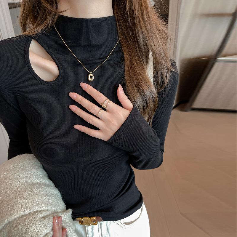 Новая женская рубашка с полувысоким воротом для осени и зимы с длинными рукавами и ажурным верхом, высококачественная, можно носить на стройном теле.