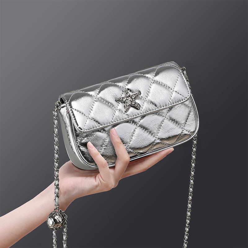 Осенняя универсальная сумка через плечо, новая сумка на цепочке из натуральной кожи, серебристая, высокого качества, маленькая квадратная сумка